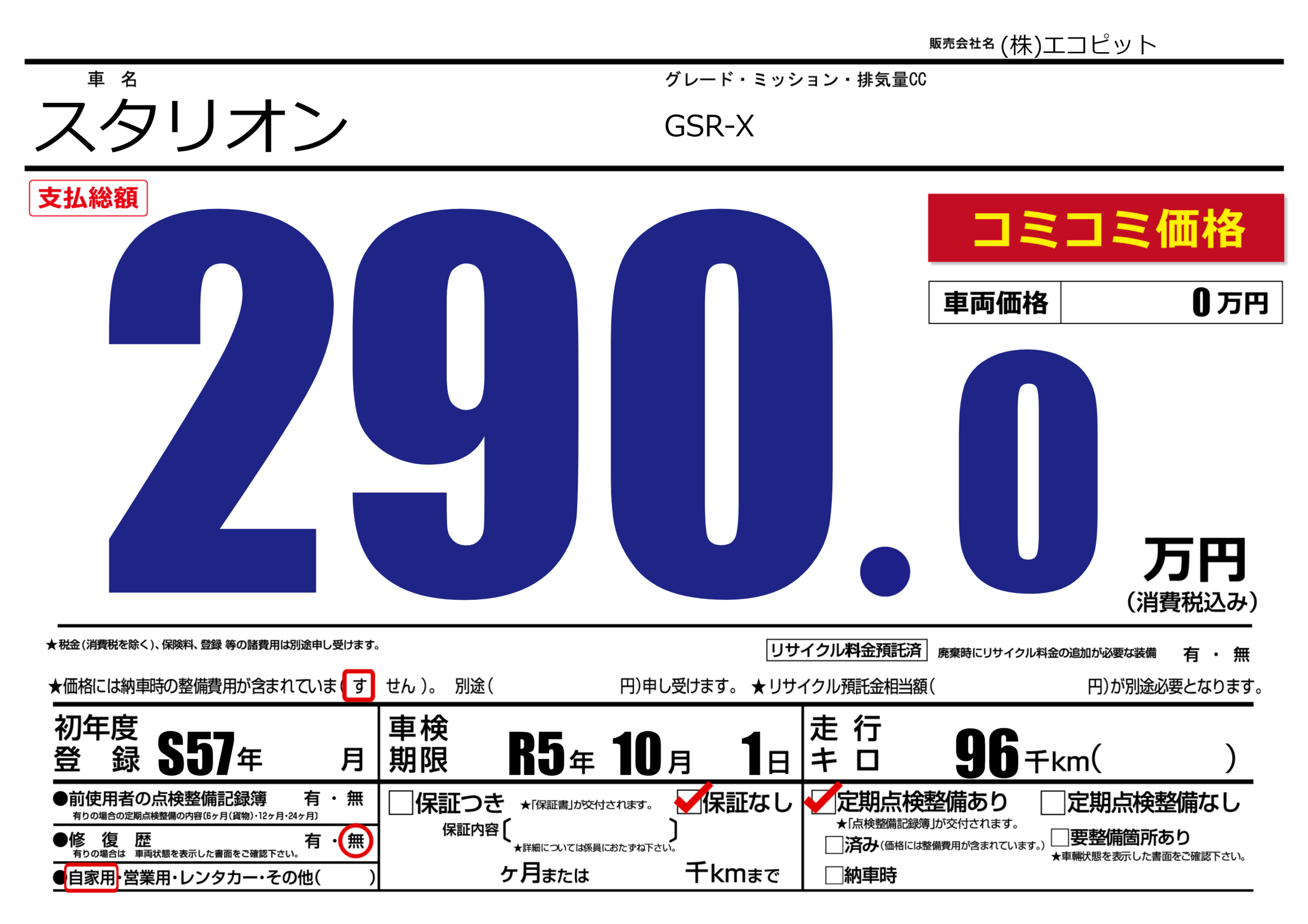 | 車名 | スタリオン | グレード ミッション 排気量 |