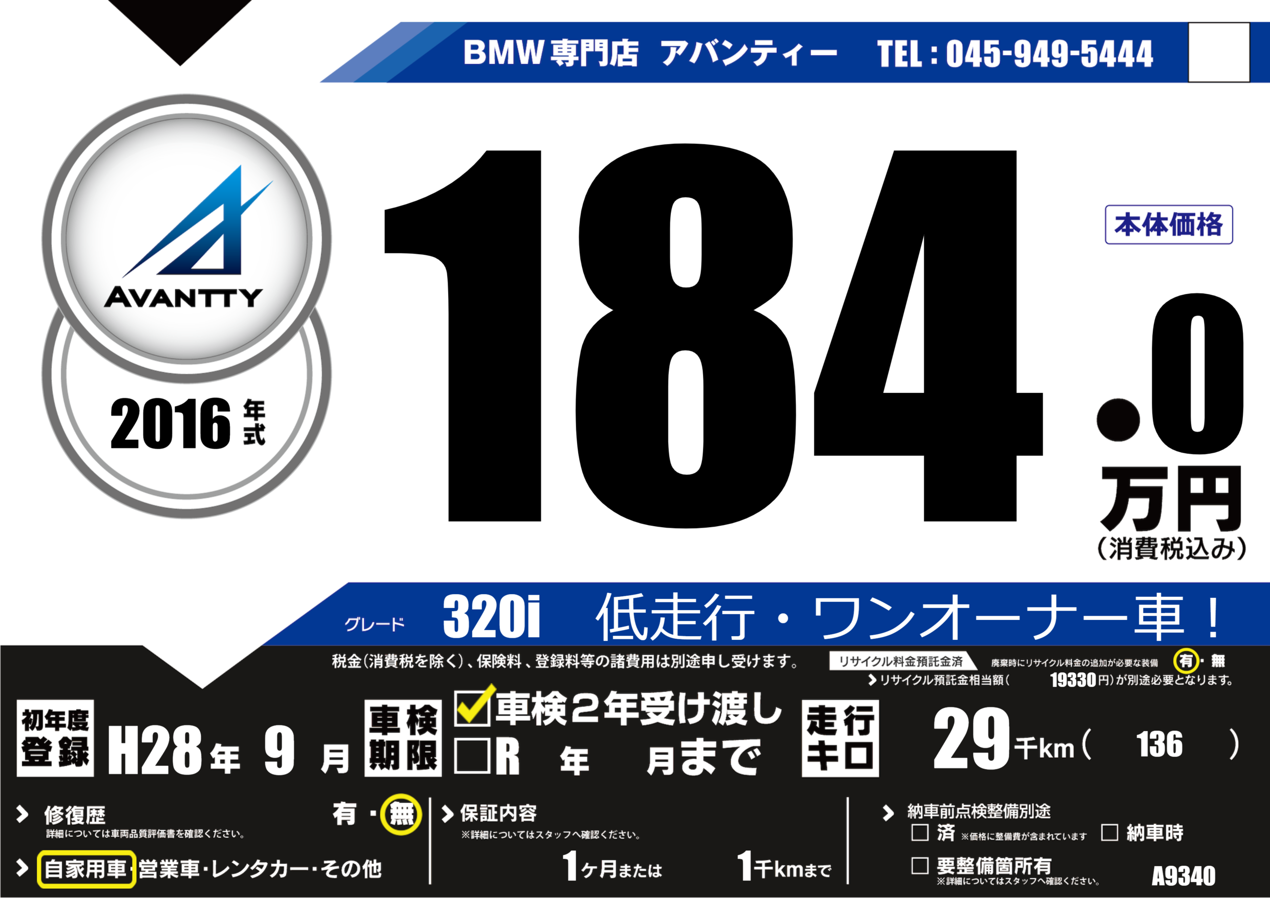 | 走行キロ | 2.9万km | 初年度登録 | H28年9月 |