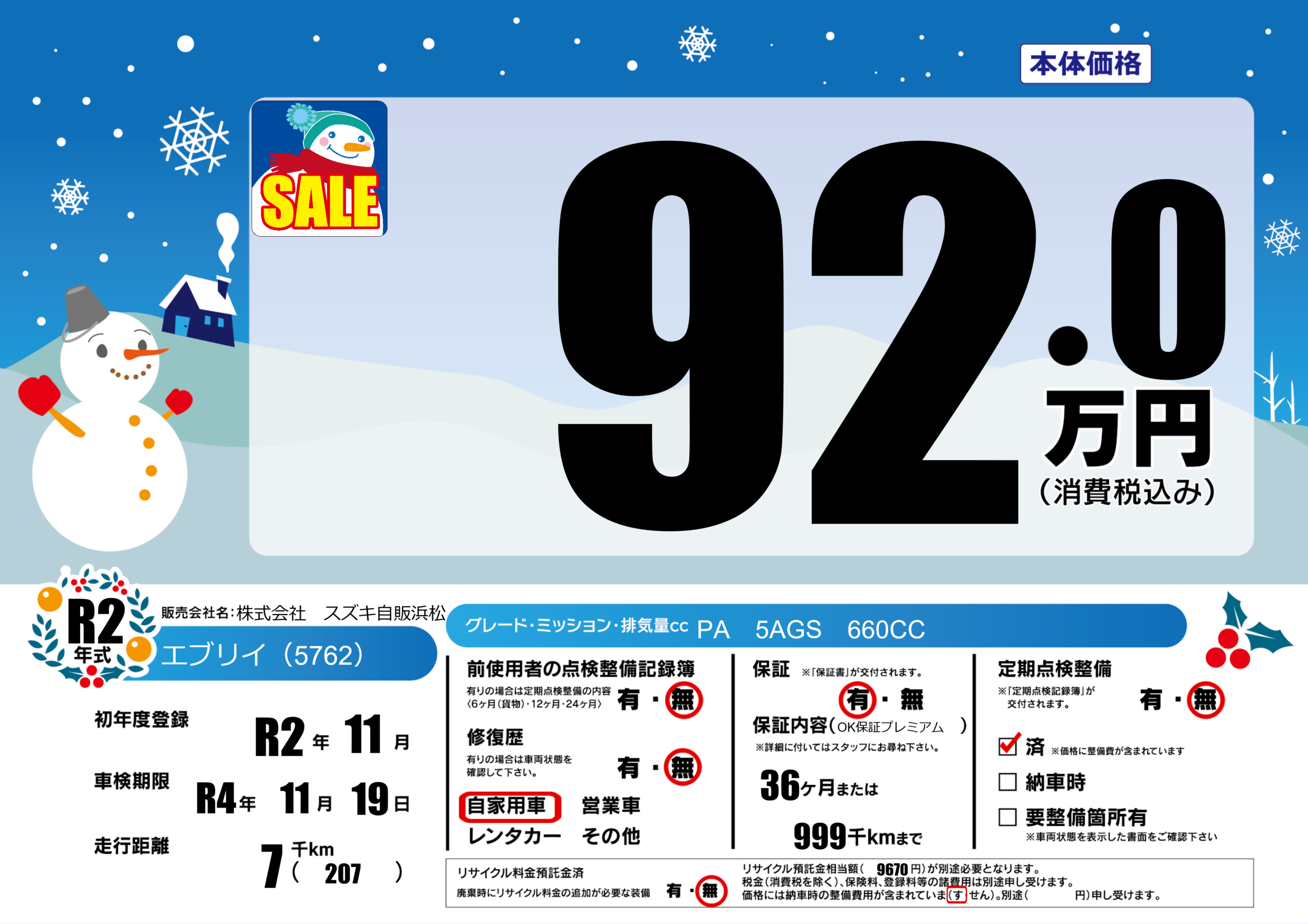 | 車名 | エブリイ(5762) | グレード ミッション 排気量 |