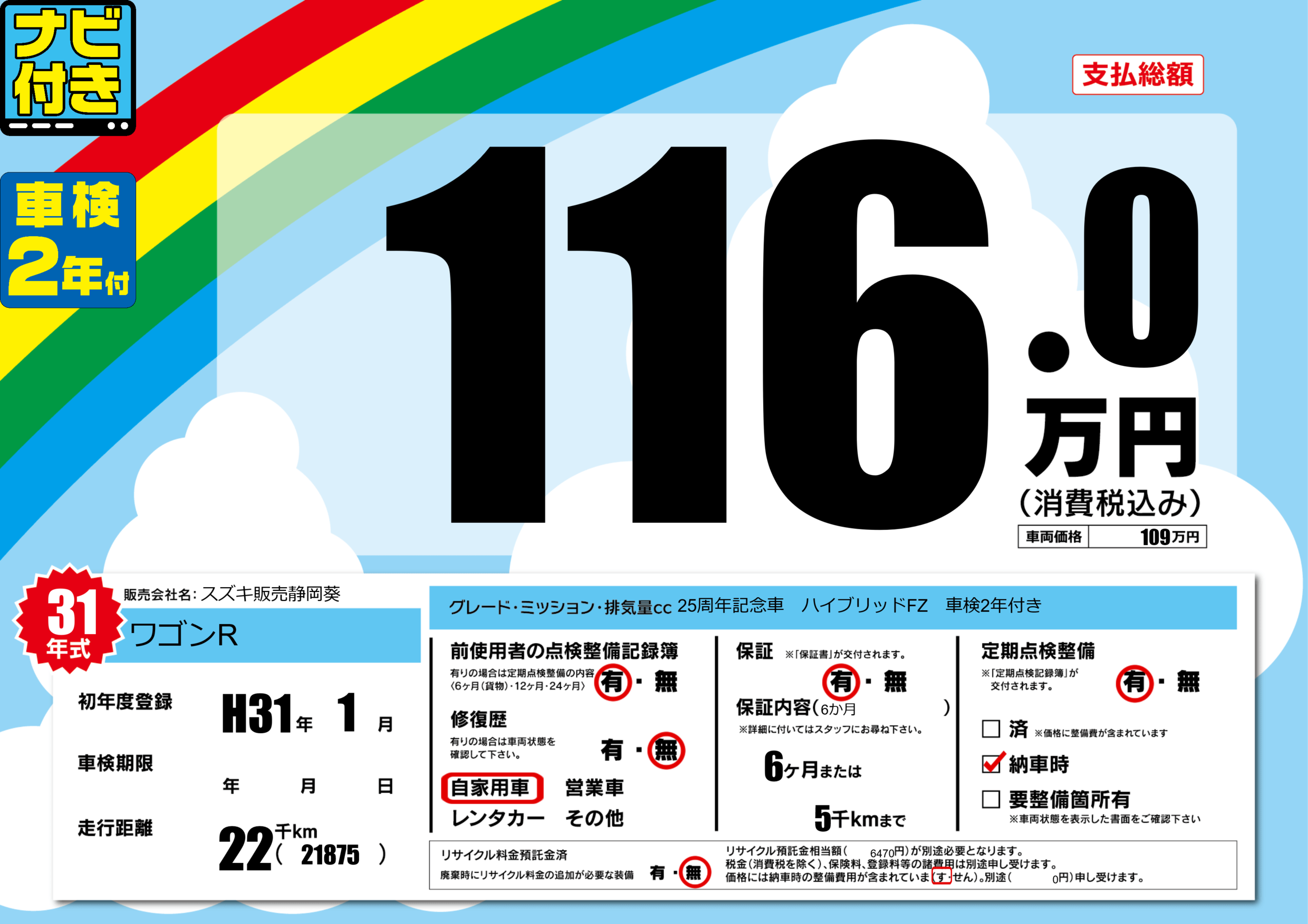 | 車名 | ワゴンR | グレード ミッション 排気量 |