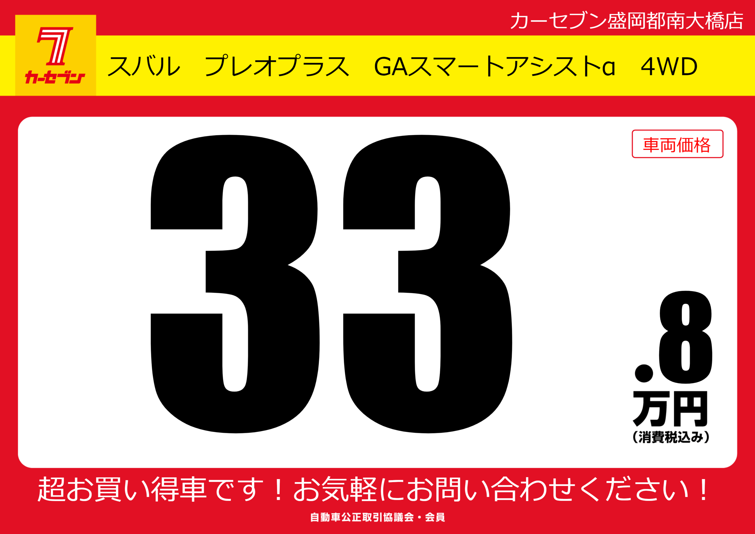 | 車名 | スバル プレオプラス GAスマートアシストα 4WD | グレード ミッション 排気量 |