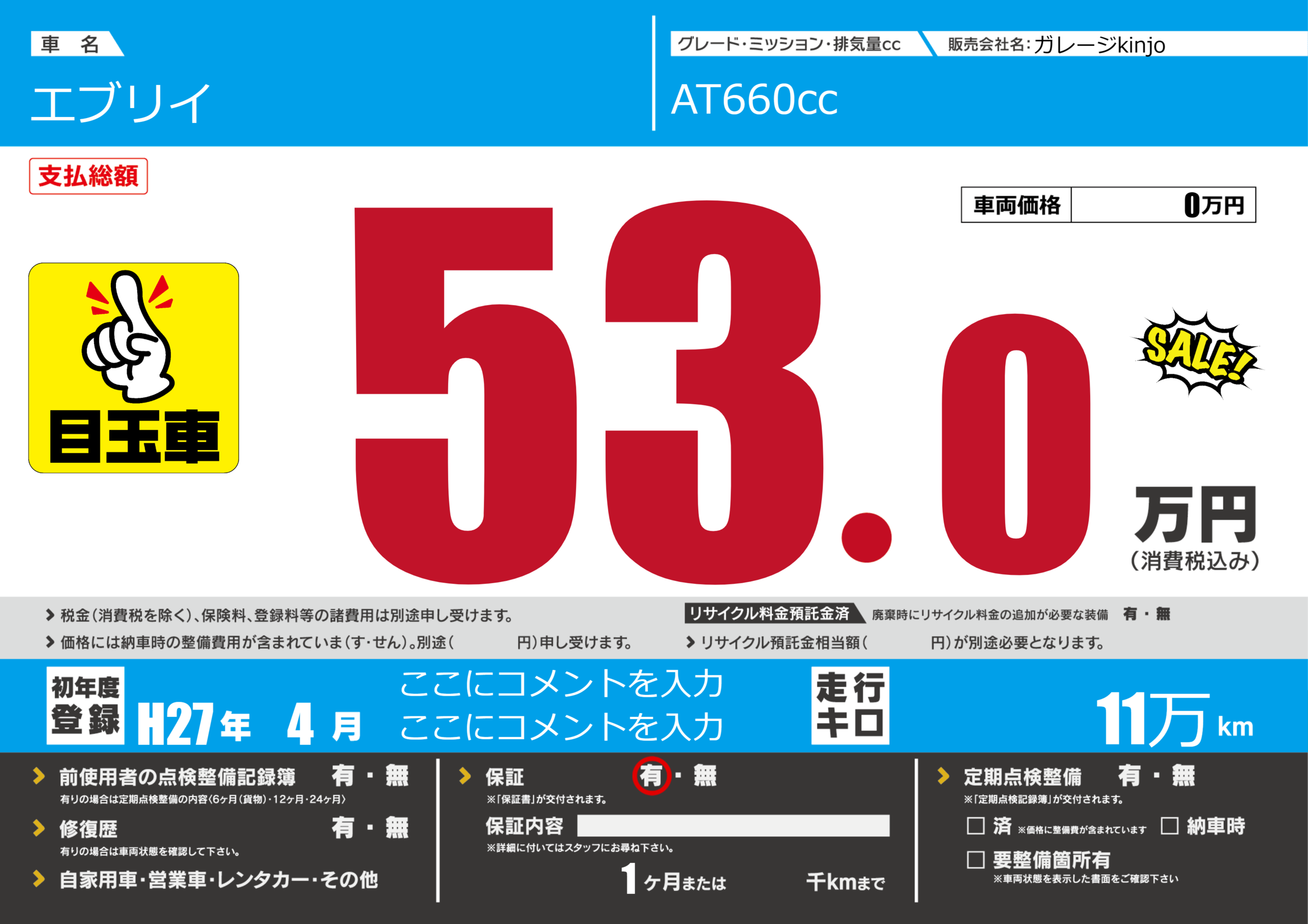 | 車検制限 | - 年 - 月 - 日 | ||