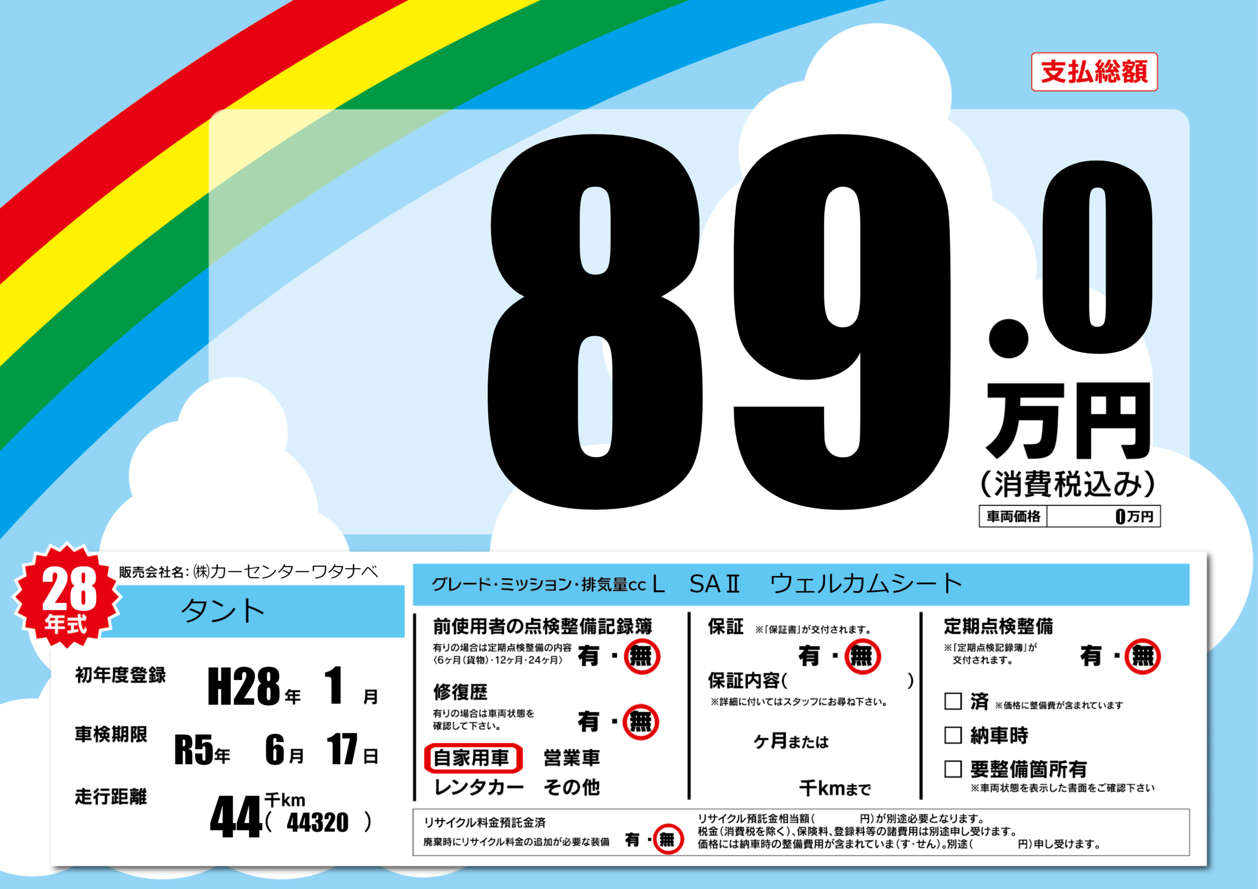 | 走行キロ | 4.4万km | 初年度登録 | H28年1月 |