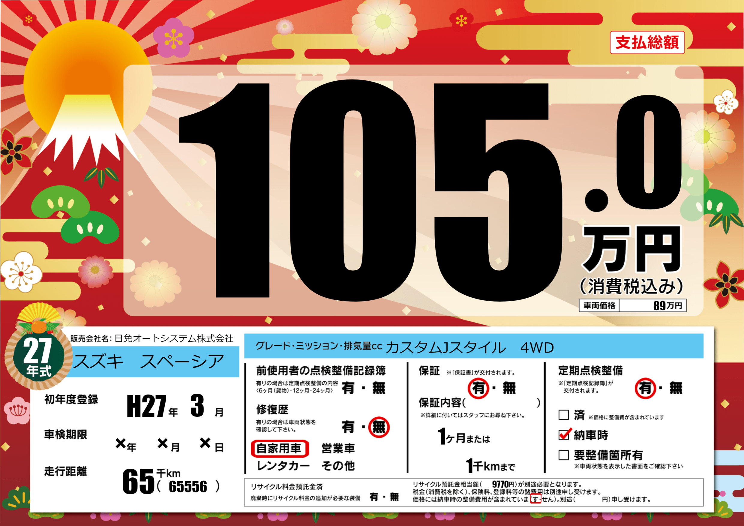 あり | 車検制限 | ×年×月×月 |