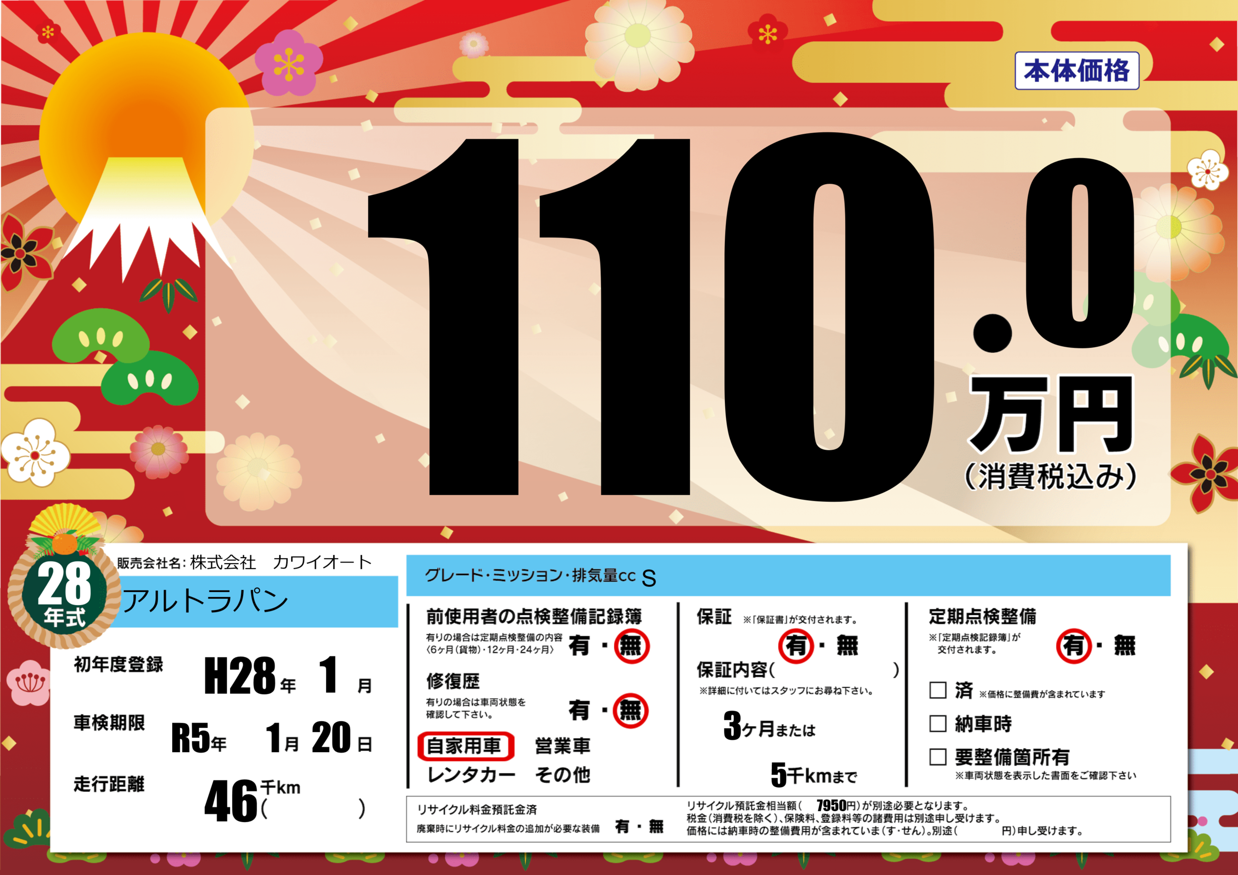 | 車検制限 | R5年 1月 20日 | ||