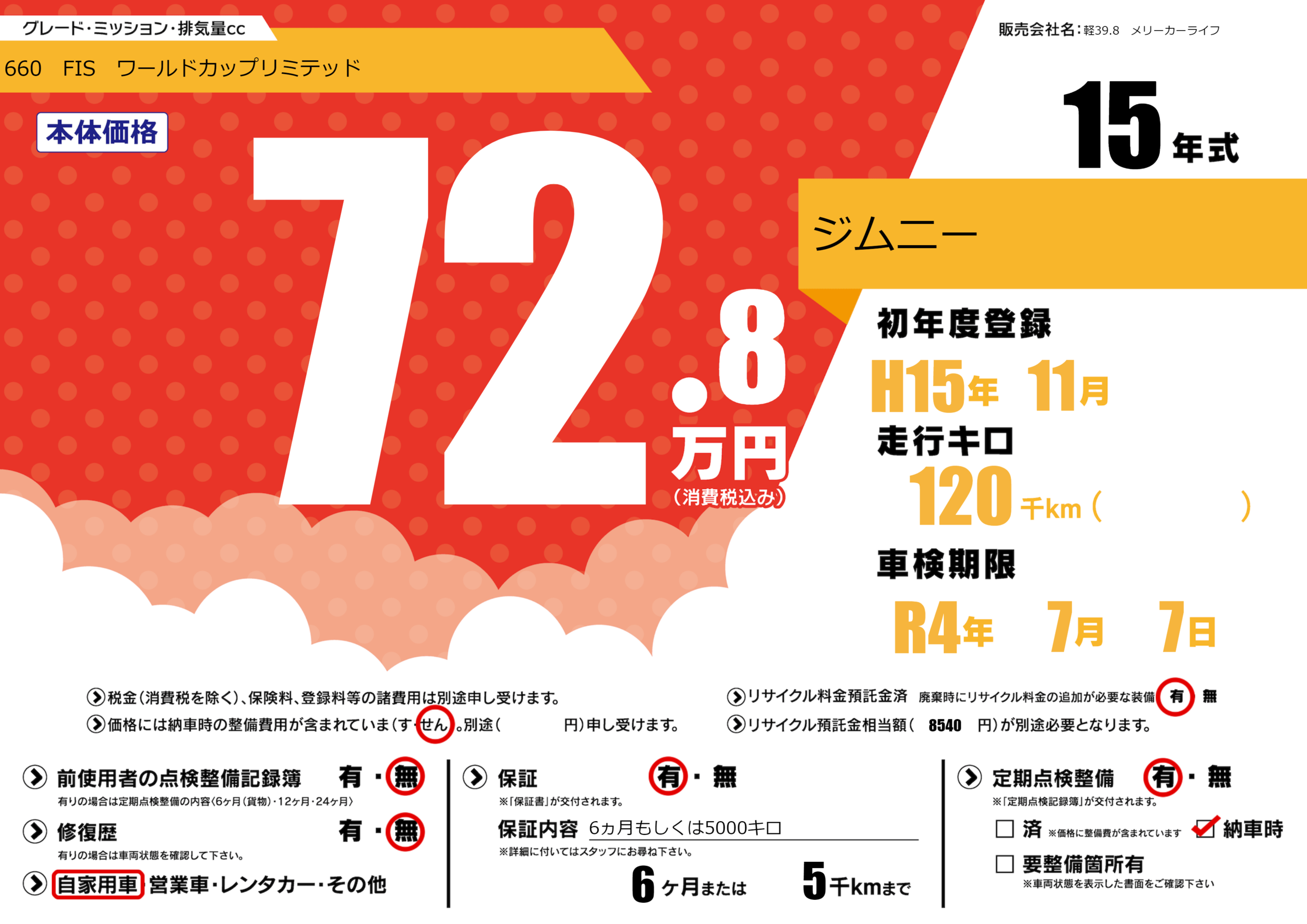 なし | 車検制限 | R4年7月7月 |