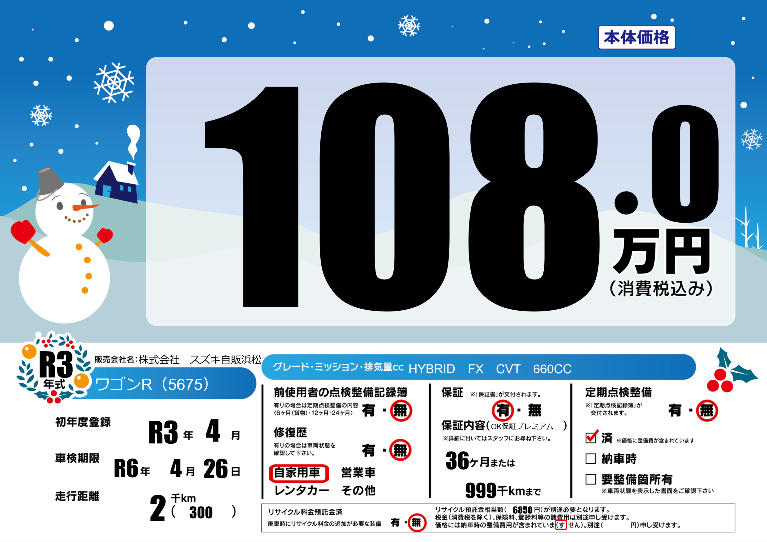 | 車名 | ワゴンR(5675) | グレード ミッション 排気量 |