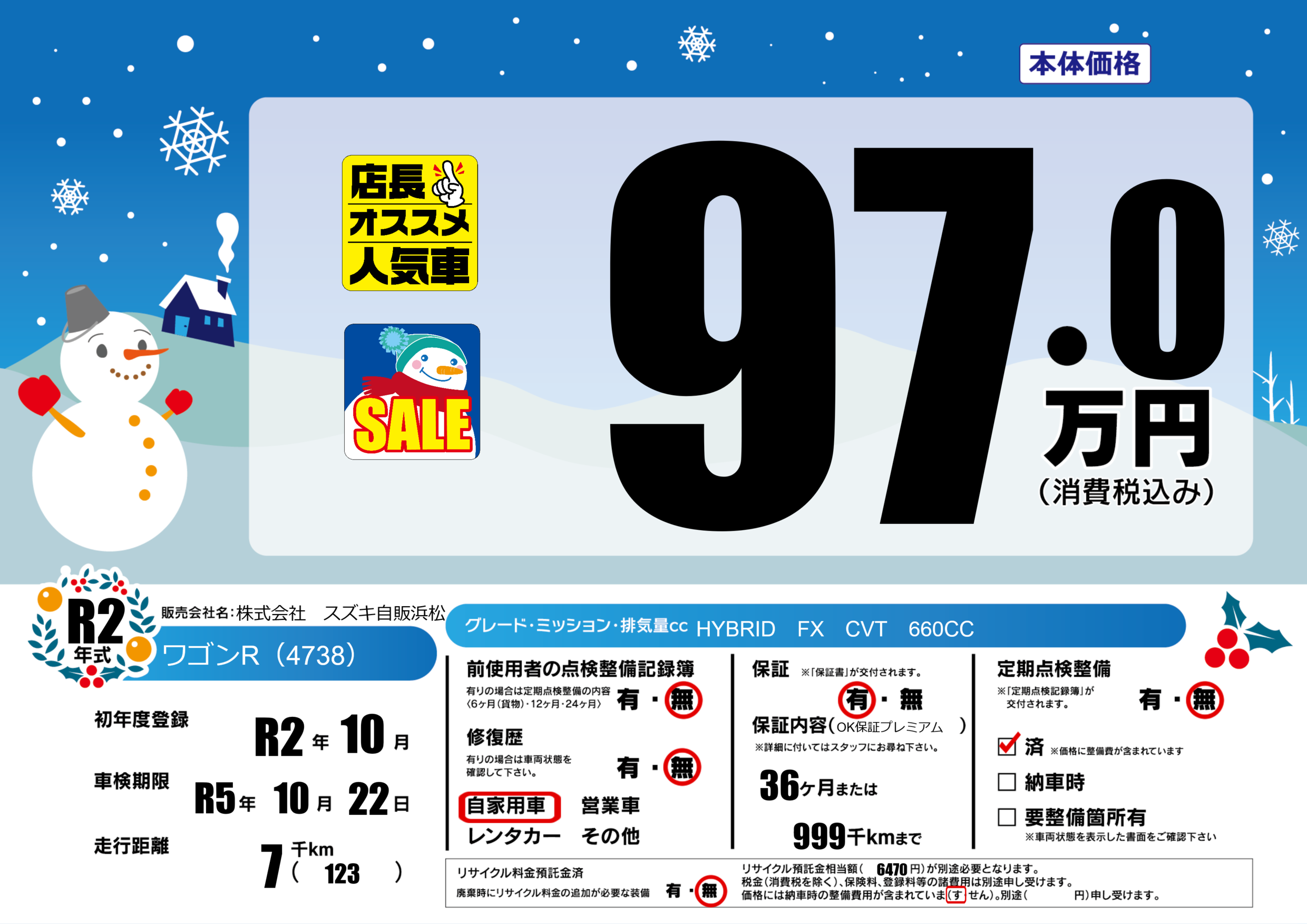 | 車名 | ワゴンR(4738) | グレード ミッション 排気量 |