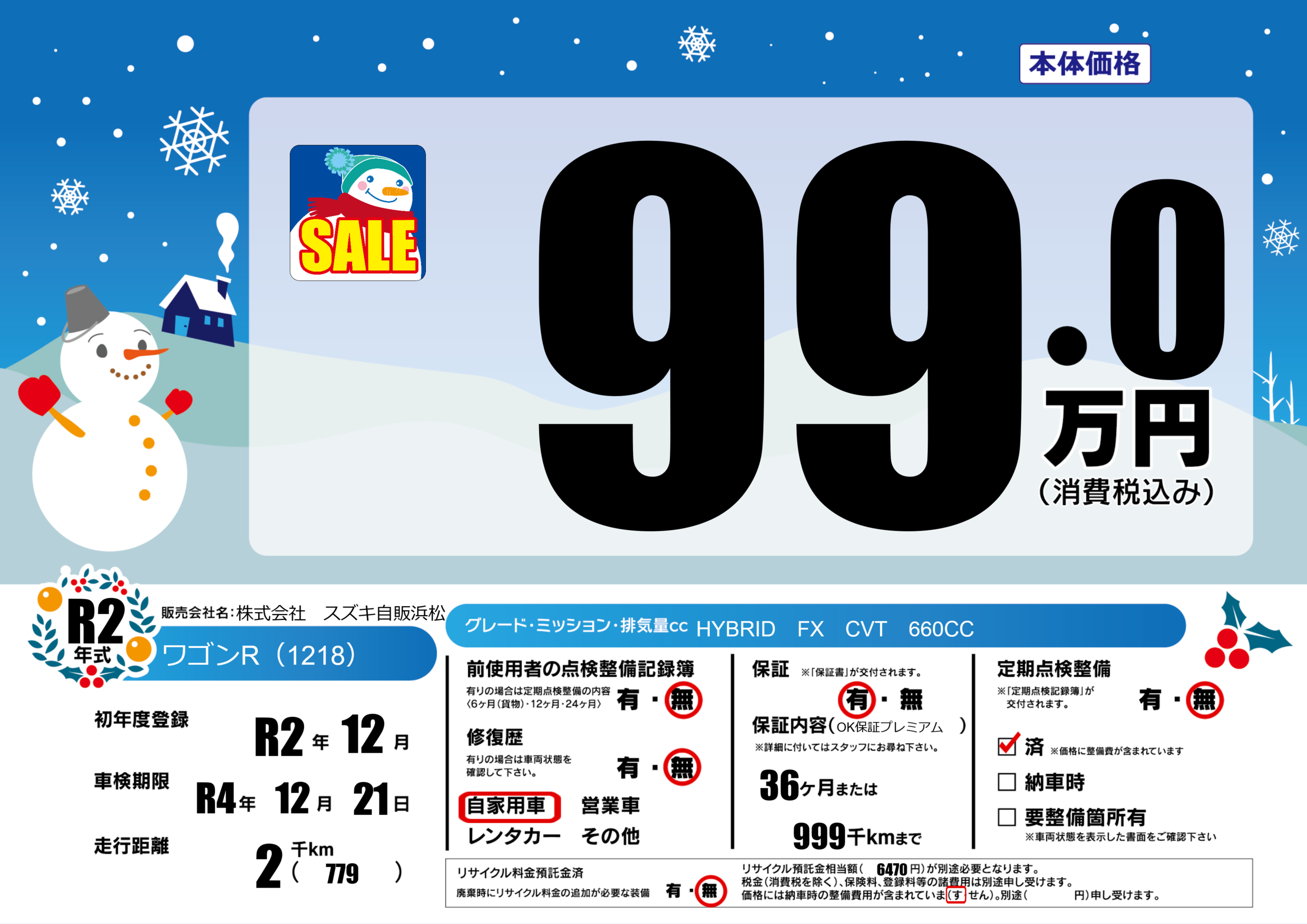 | 車名 | ワゴンR(1218) | グレード ミッション 排気量 |