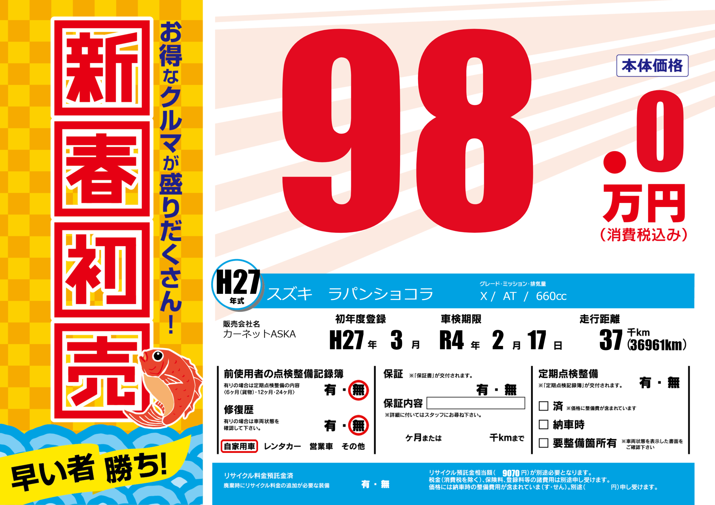 | 走行キロ | 3.7万km | 初年度登録 | H27年3月 |