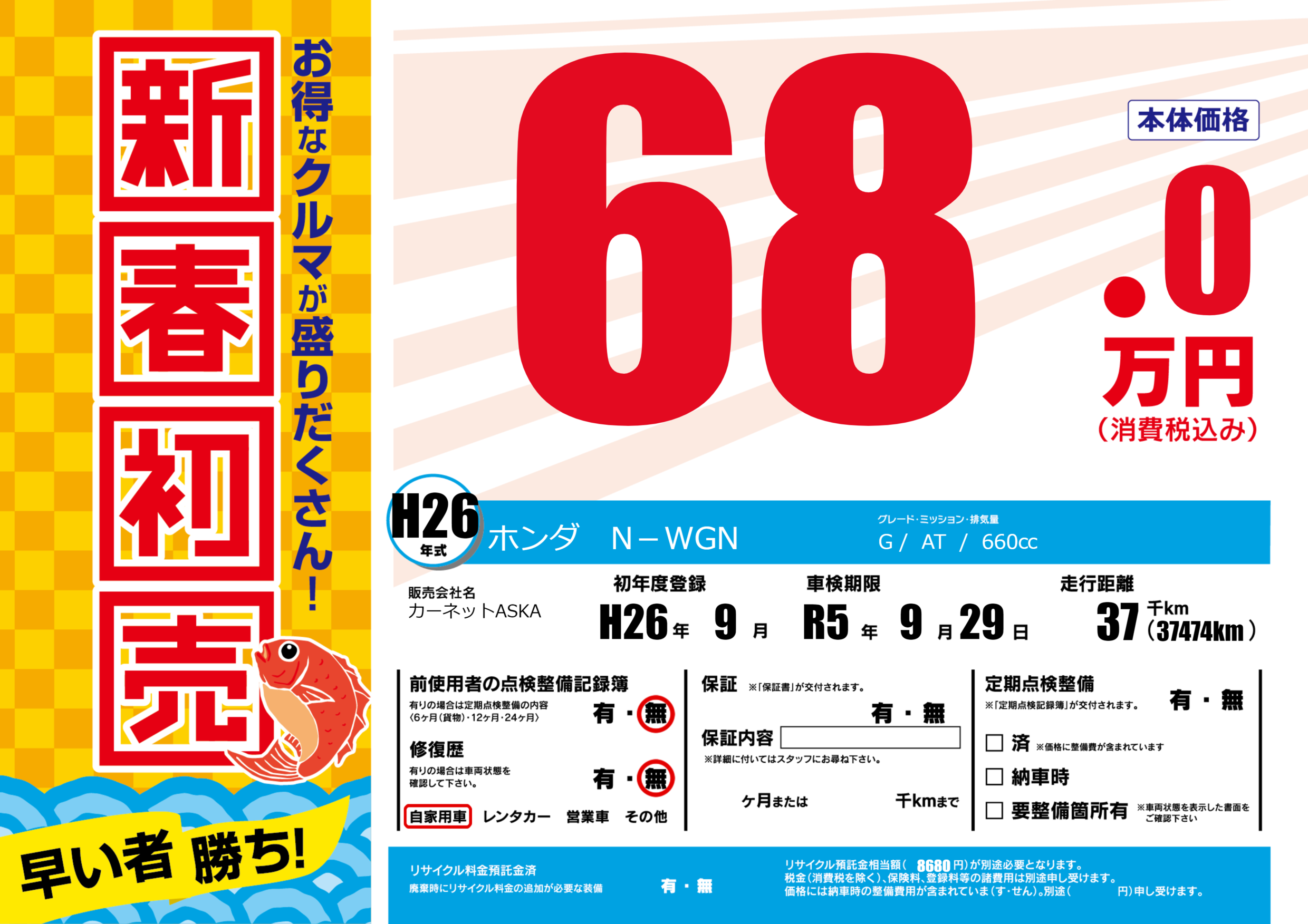 | 車名 | ホンダ N-WGN | グレード ミッション 排気量 |