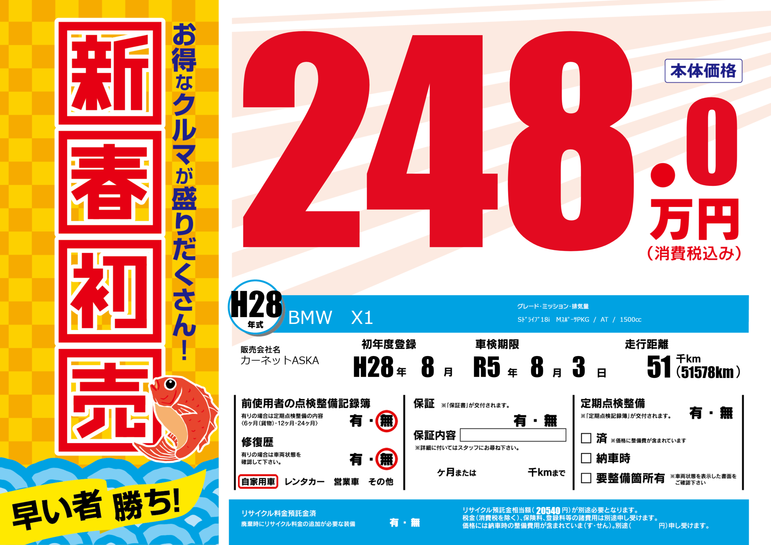 | 車名 | BMW X1 | グレード ミッション 排気量 |