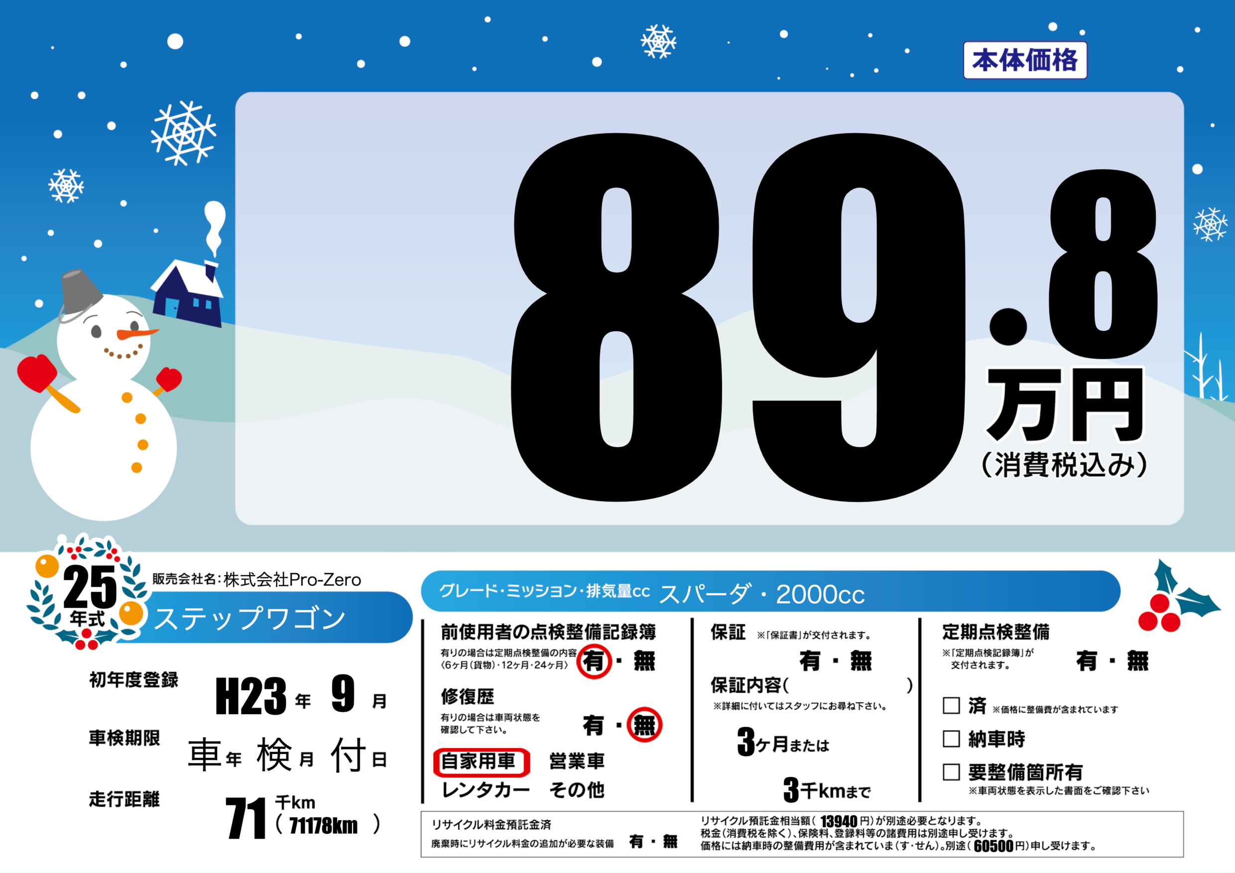 | 走行キロ | 7.1万km | 初年度登録 | H23年9月 |