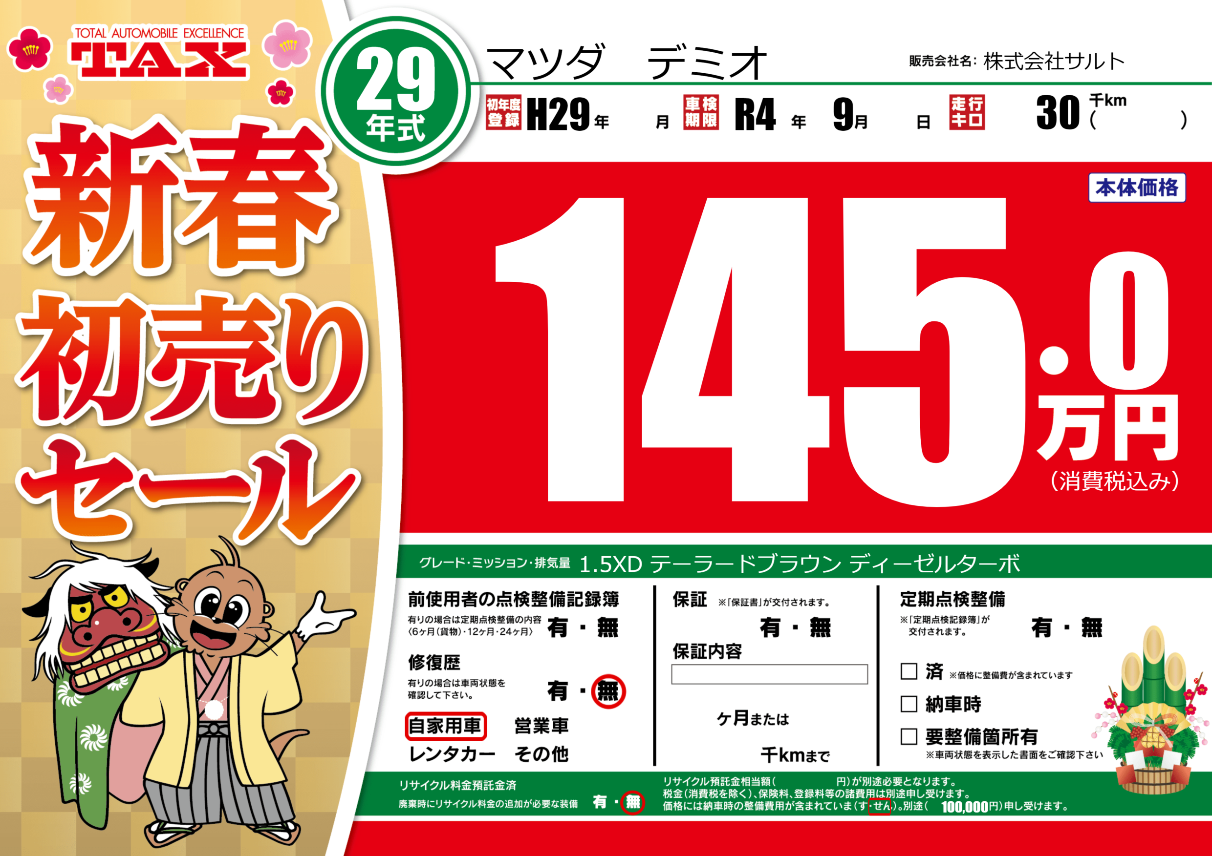 | 車名 | マツダ デミオ | グレード ミッション 排気量 |