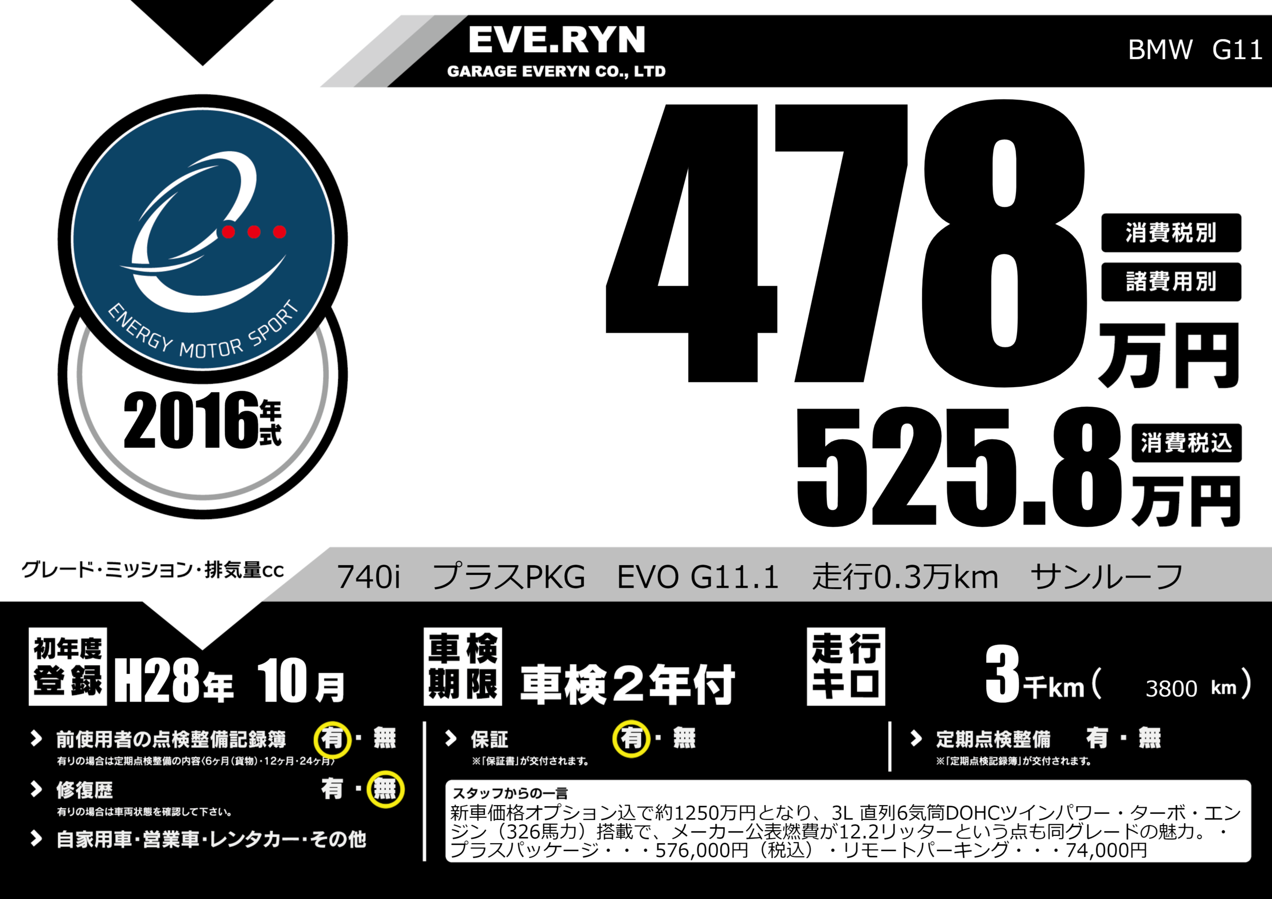 740i プラスPKG EVO G11.1 走行0.3万km サンルーフ |