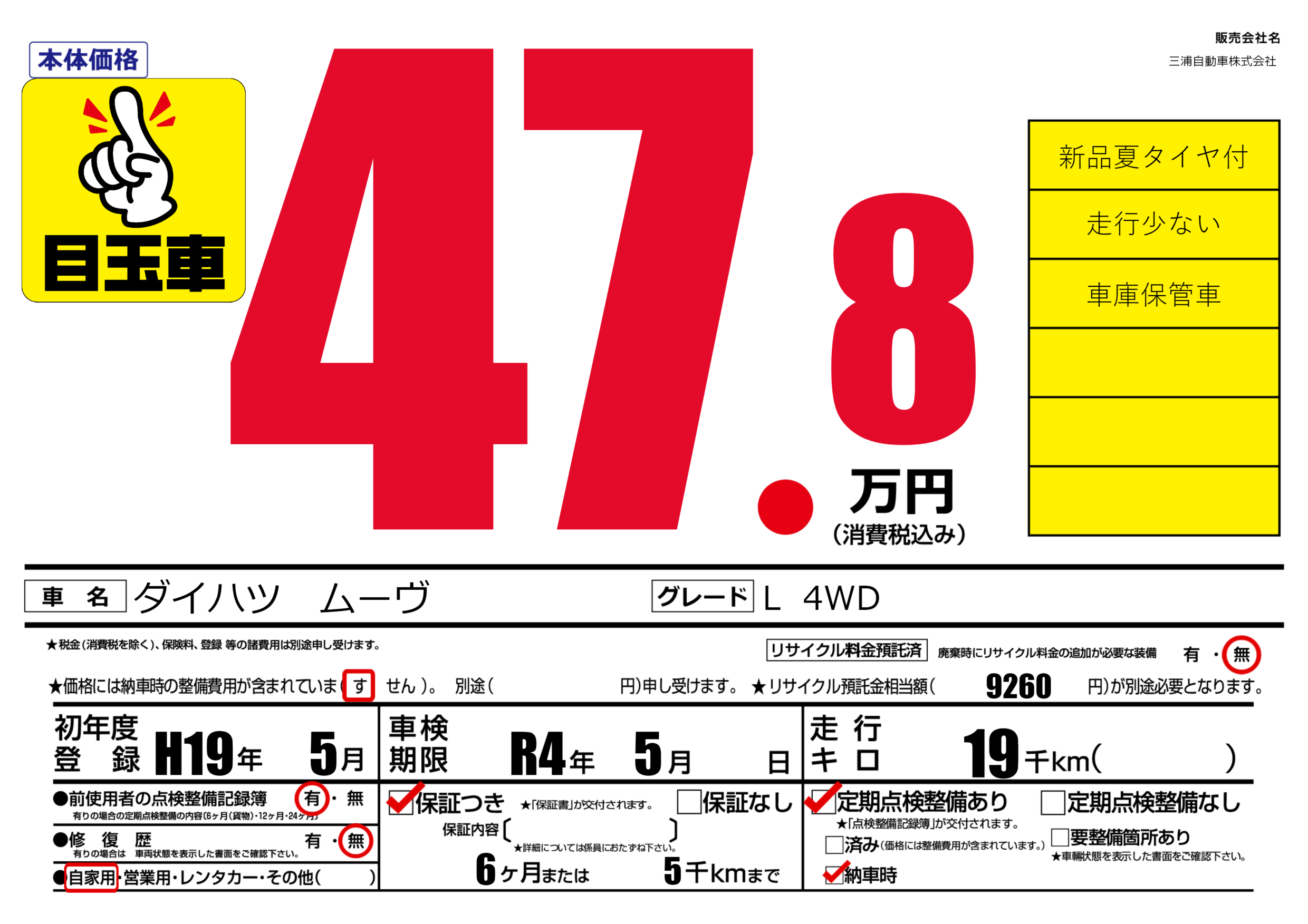 保証付き 保証内容(---) 6ヶ月または(5)千kmまで |