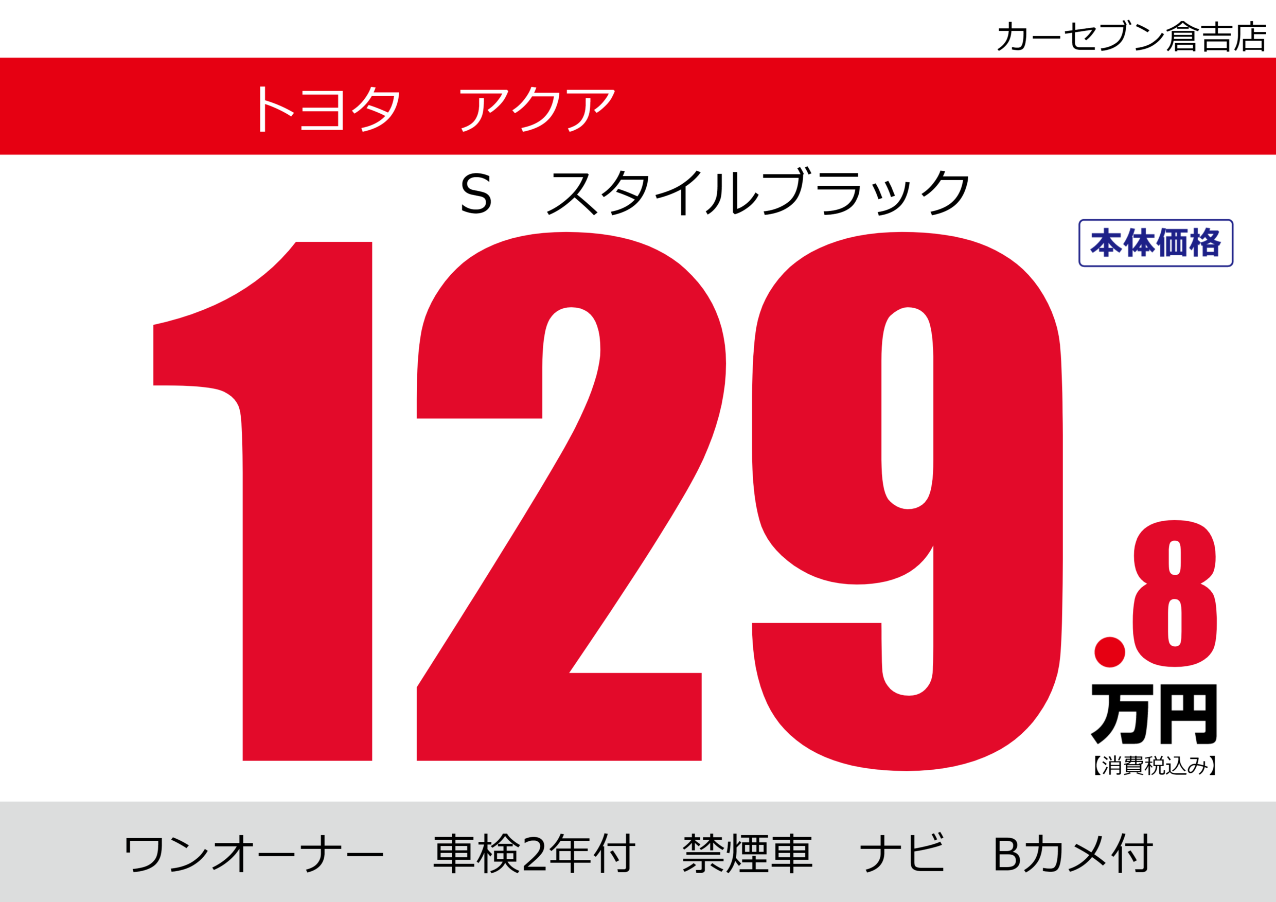| 車名 | トヨタ アクア | グレード ミッション 排気量 |