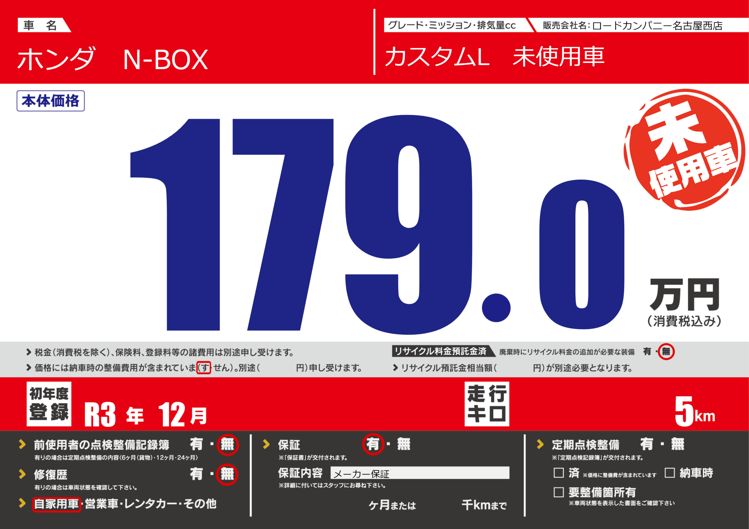 保証付き 保証内容(メーカー保証) ---ヶ月または()千kmまで |