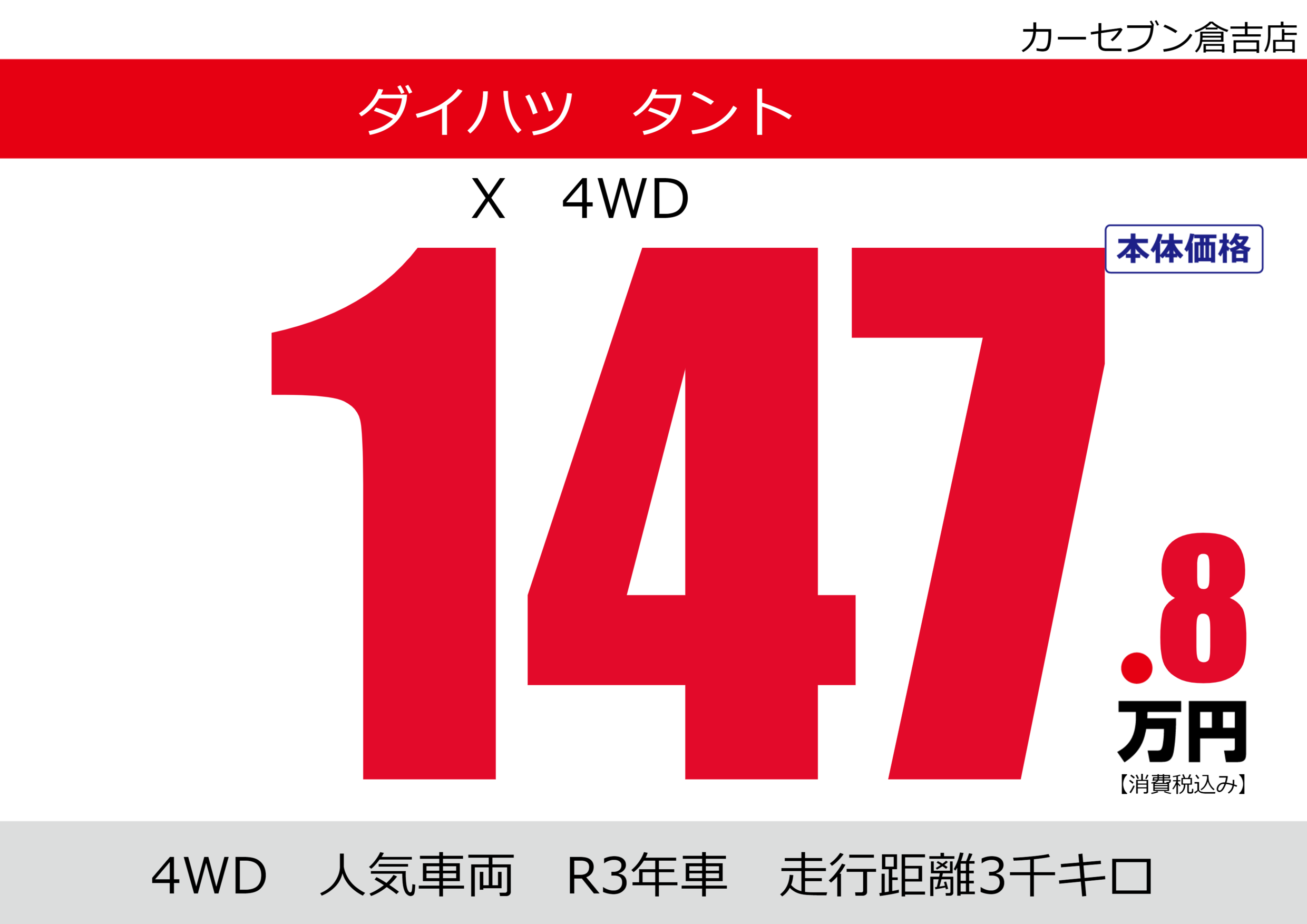 | 車名 | ダイハツ タント | グレード ミッション 排気量 |