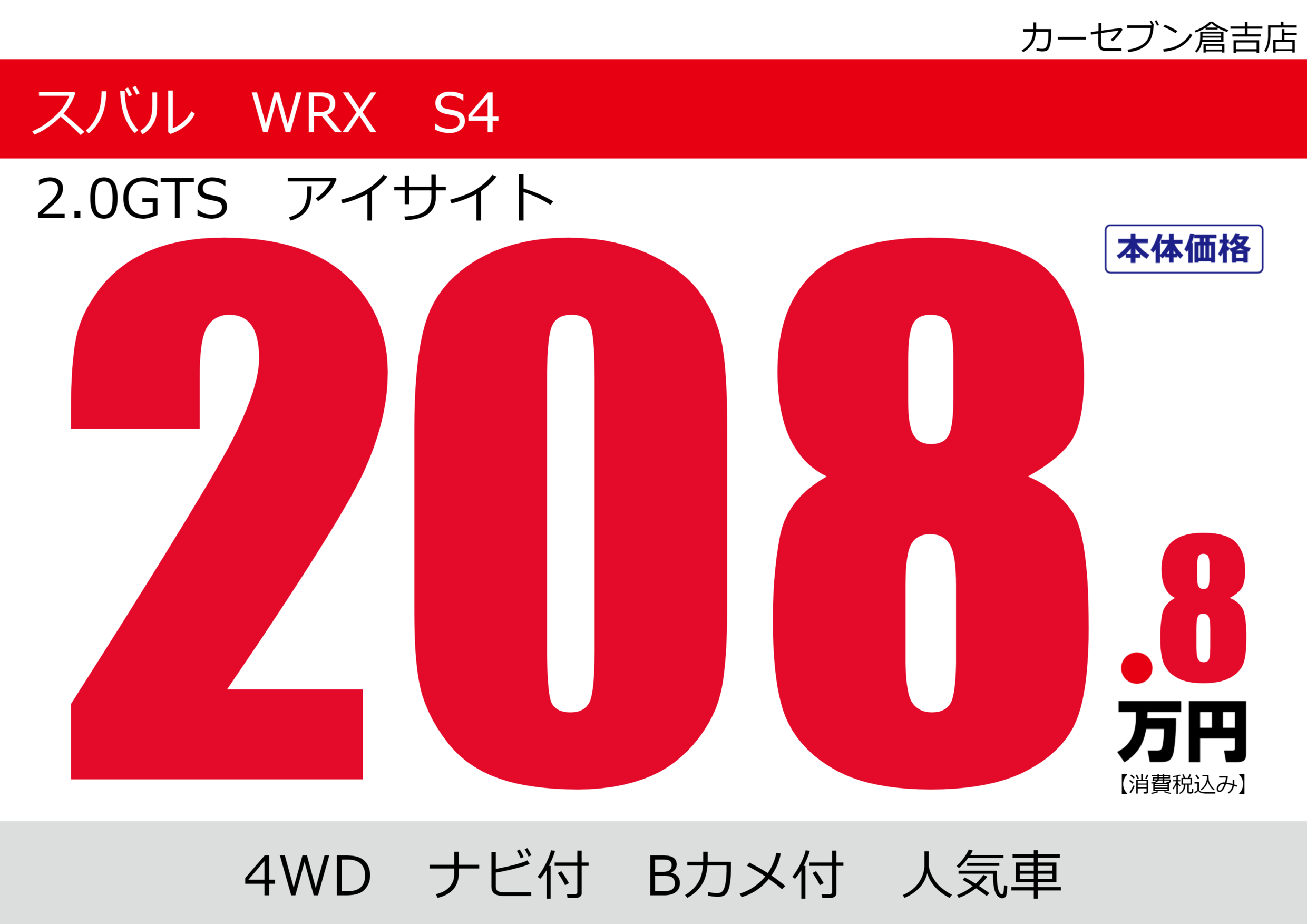 | 車名 | スバル WRX S4 | グレード ミッション 排気量 |