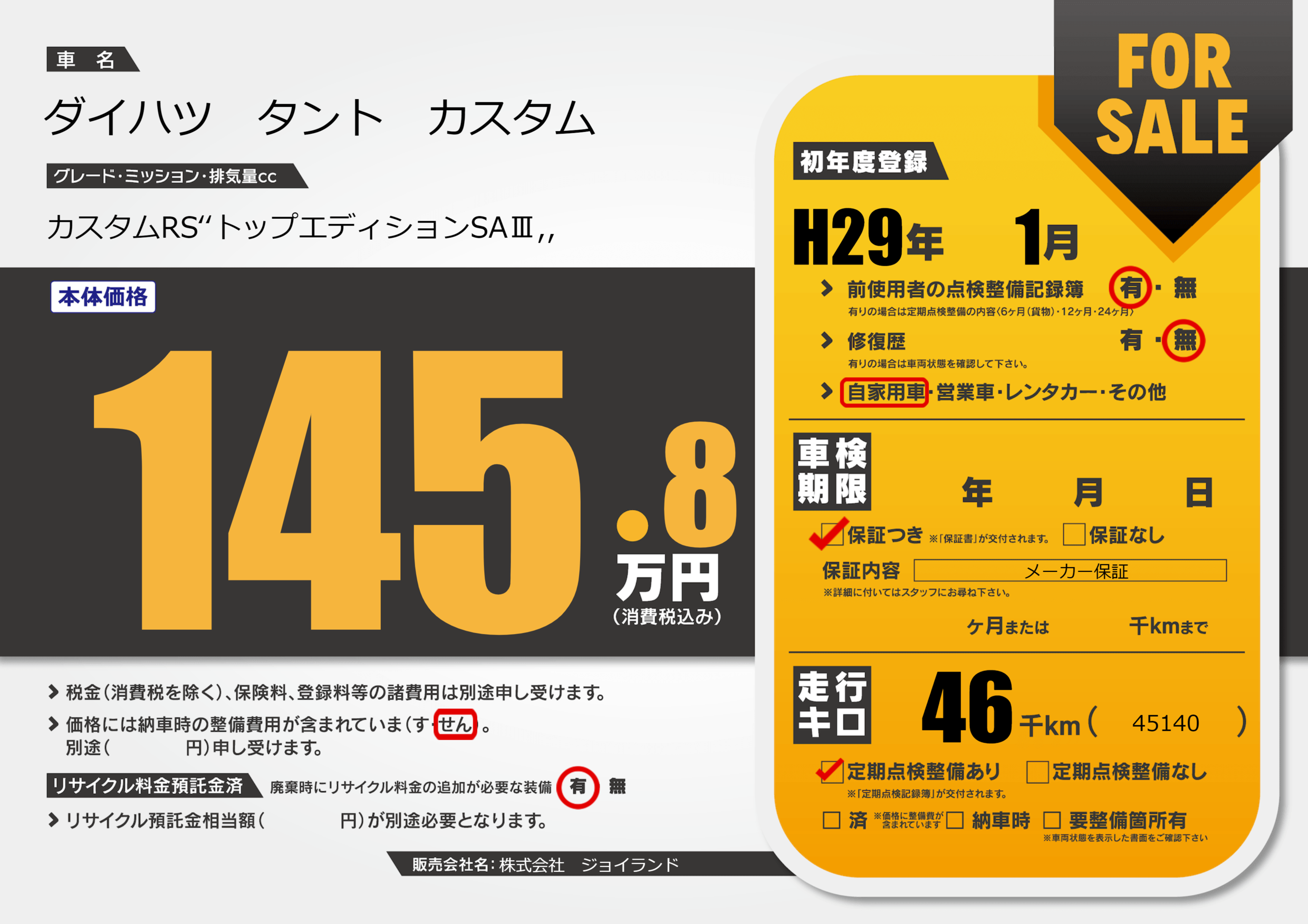 | 走行キロ | 4.6万km | 初年度登録 | H29年1月 |