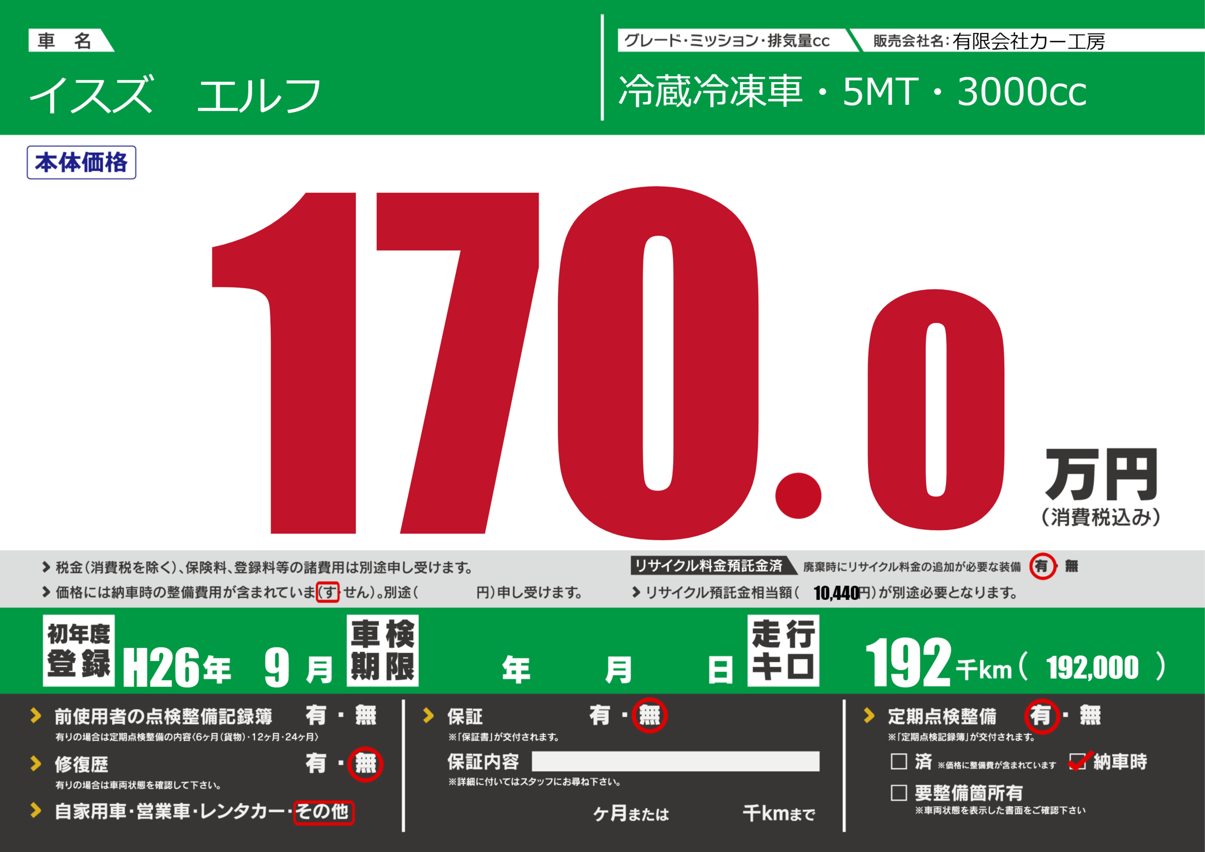 | 車名 | イスズ エルフ | グレード ミッション 排気量 |