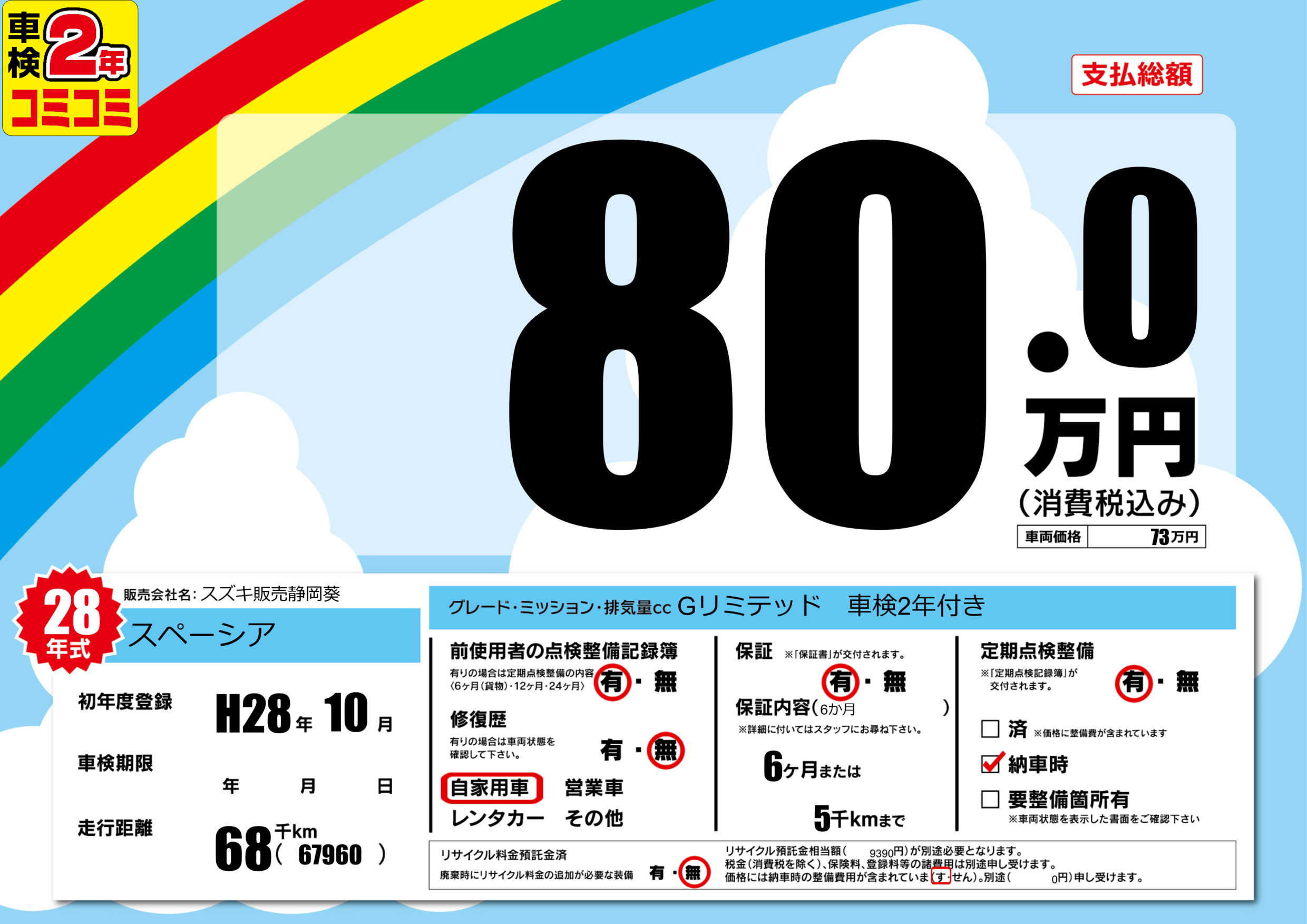 | 定期点検整備 | 定期点検整備あり 納車時あり | ||