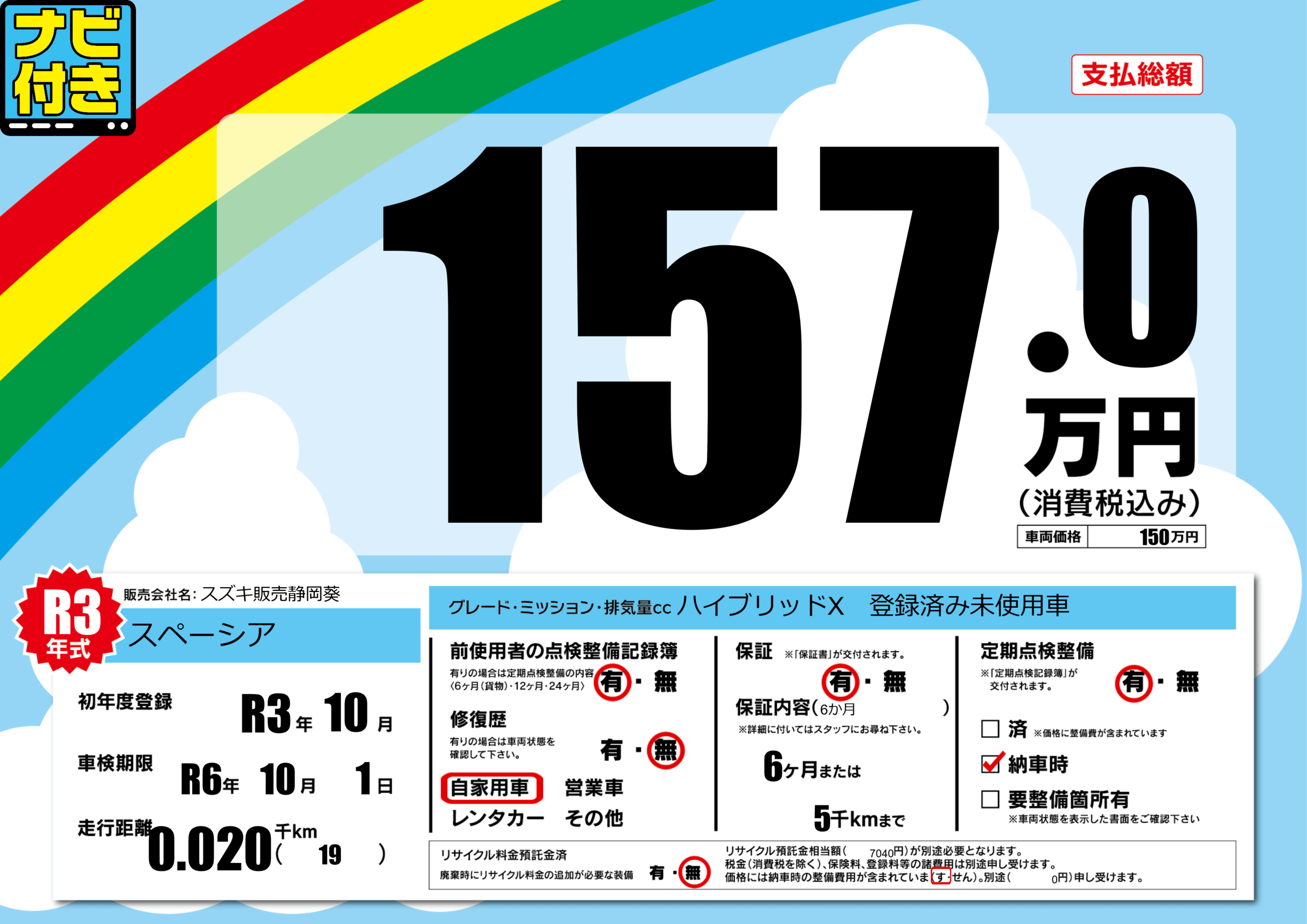 | 走行キロ | - | 初年度登録 | R3年10月 |