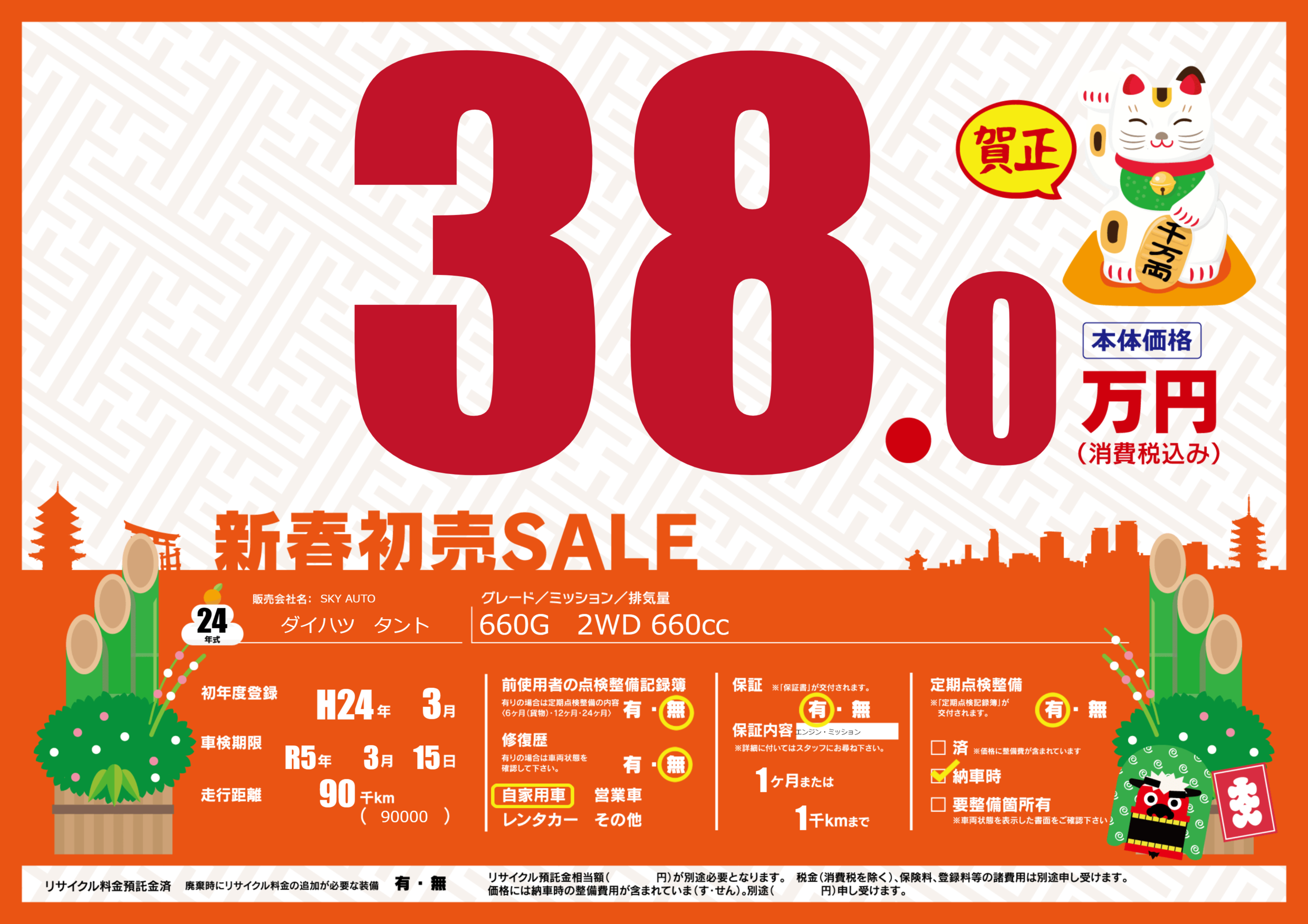 | 車名 | ダイハツ タント | グレード ミッション 排気量 |
