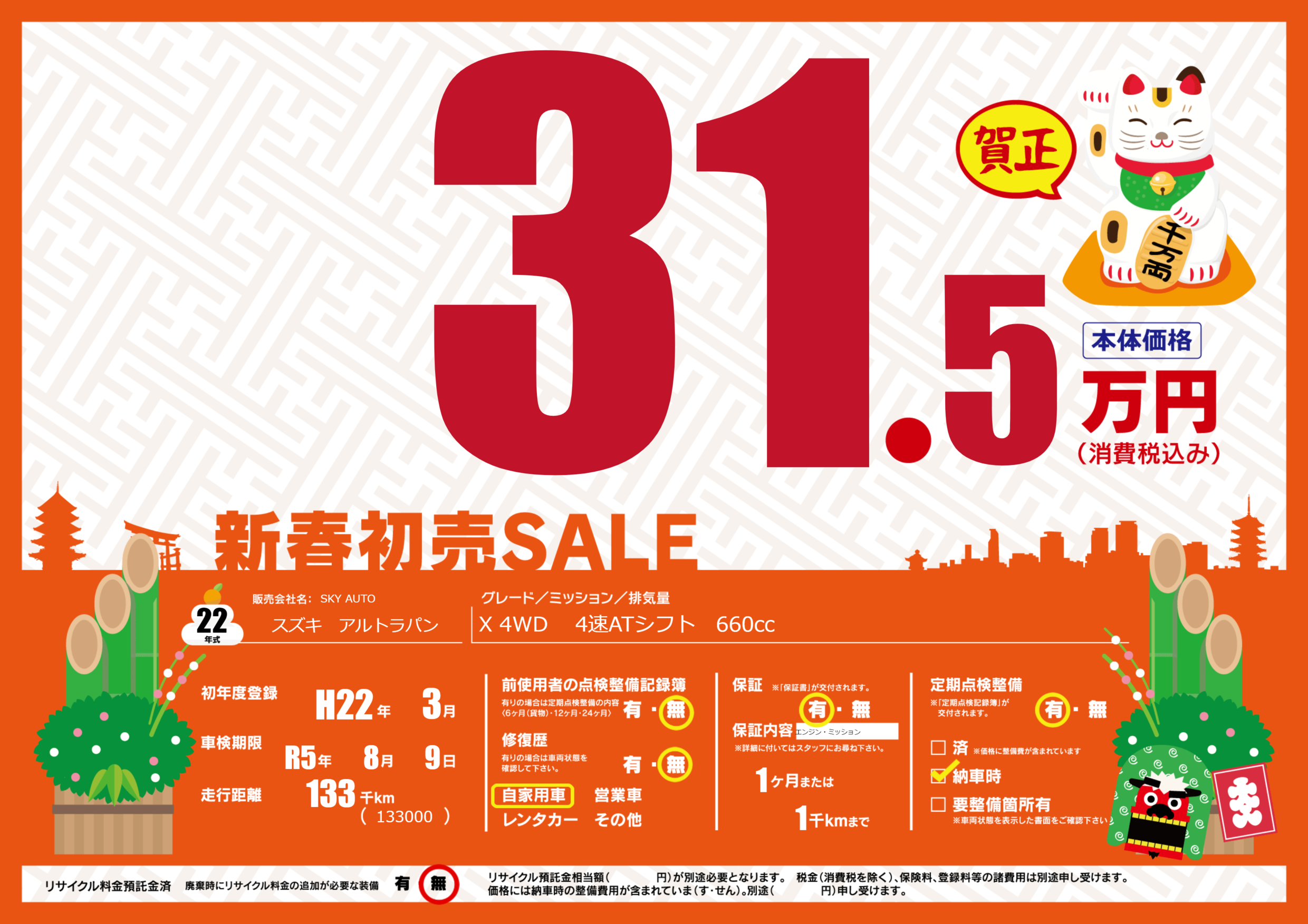 なし | 車検制限 | R5年8月9月 |