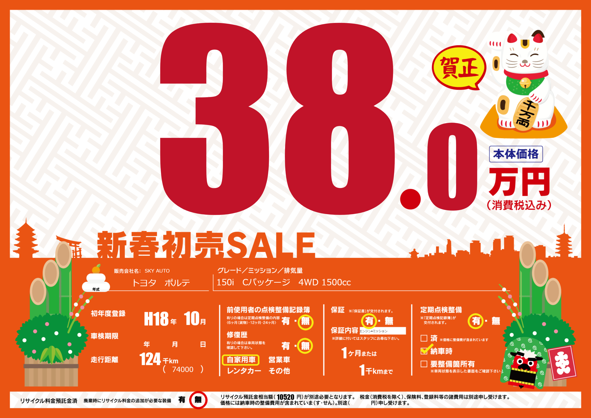 | 車名 | トヨタ ポルテ | グレード ミッション 排気量 |