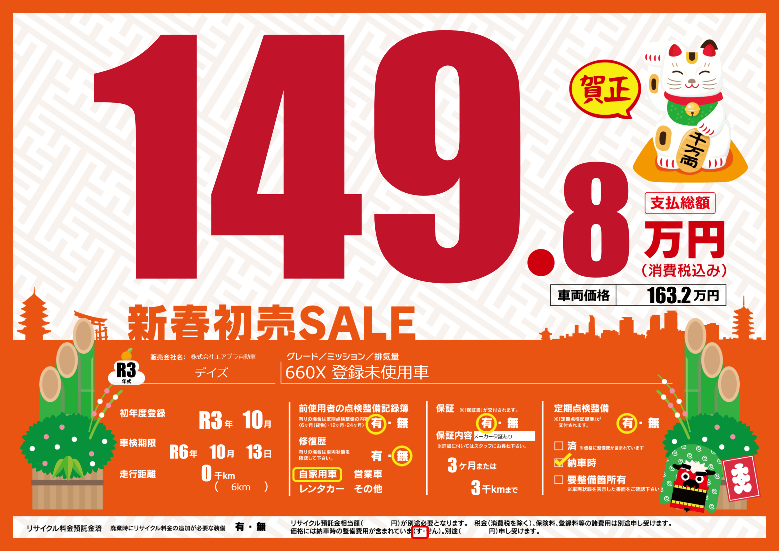 | 定期点検整備 | 定期点検整備あり 納車時あり | ||