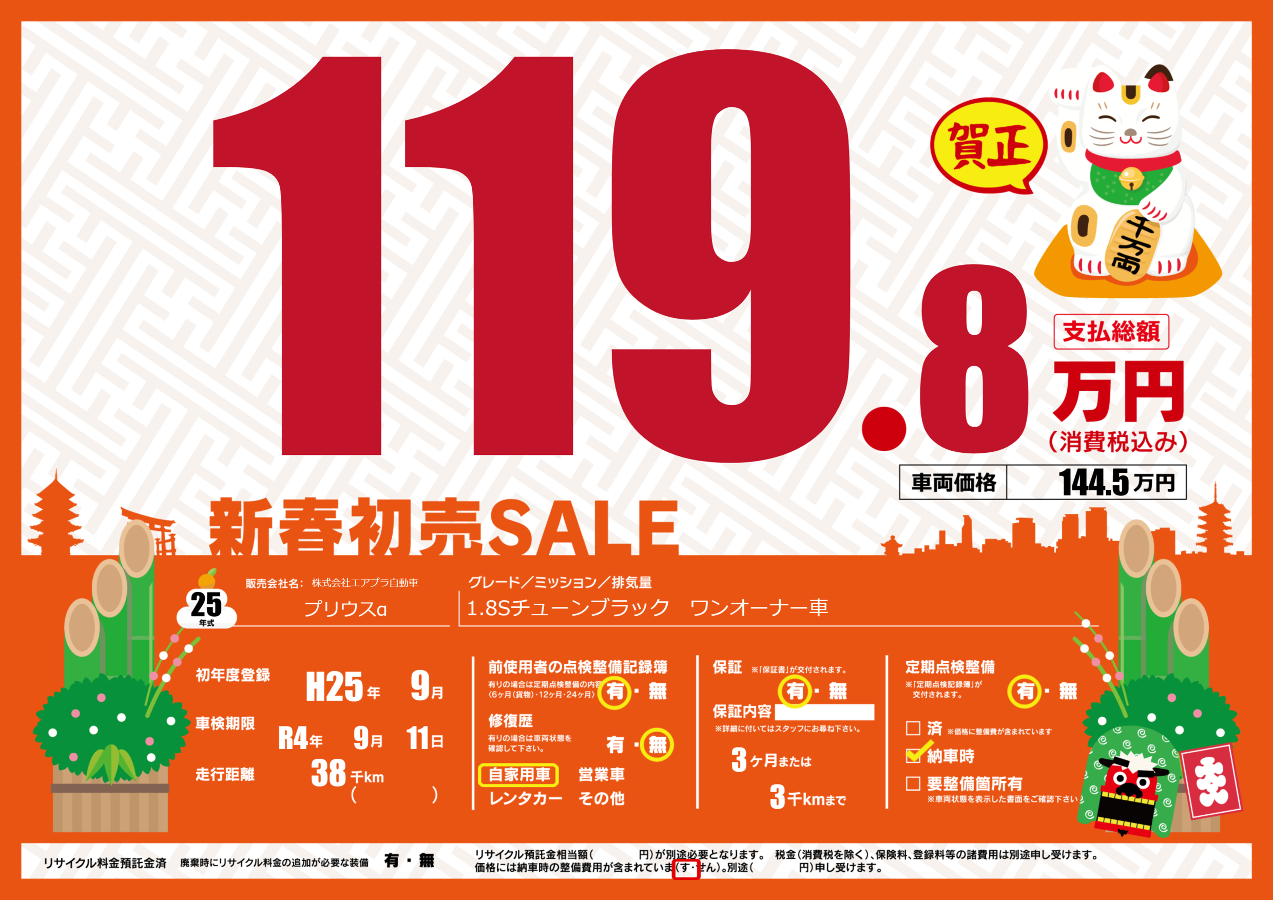 | 定期点検整備 | 定期点検整備あり 納車時あり | ||