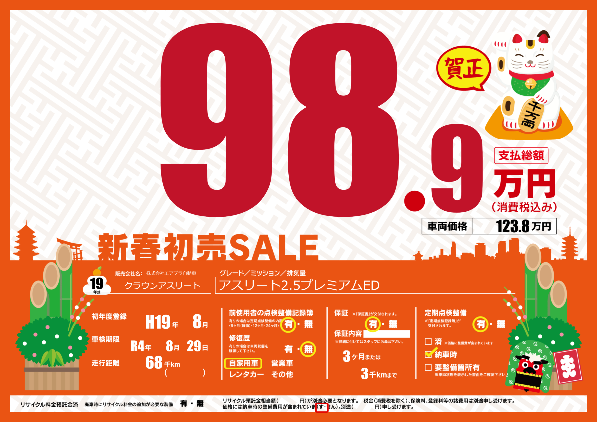 | 車名 | クラウンアスリート | グレード ミッション 排気量 |