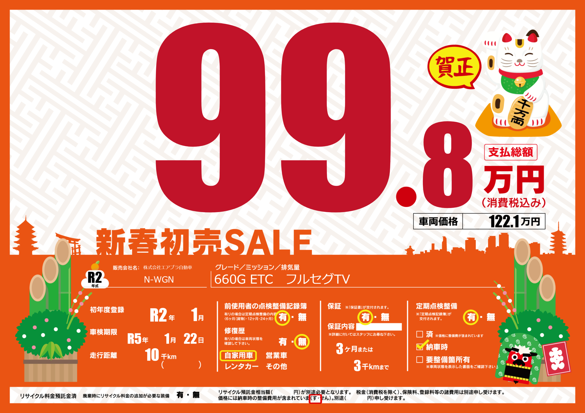 | 定期点検整備 | 定期点検整備あり 納車時あり | ||
