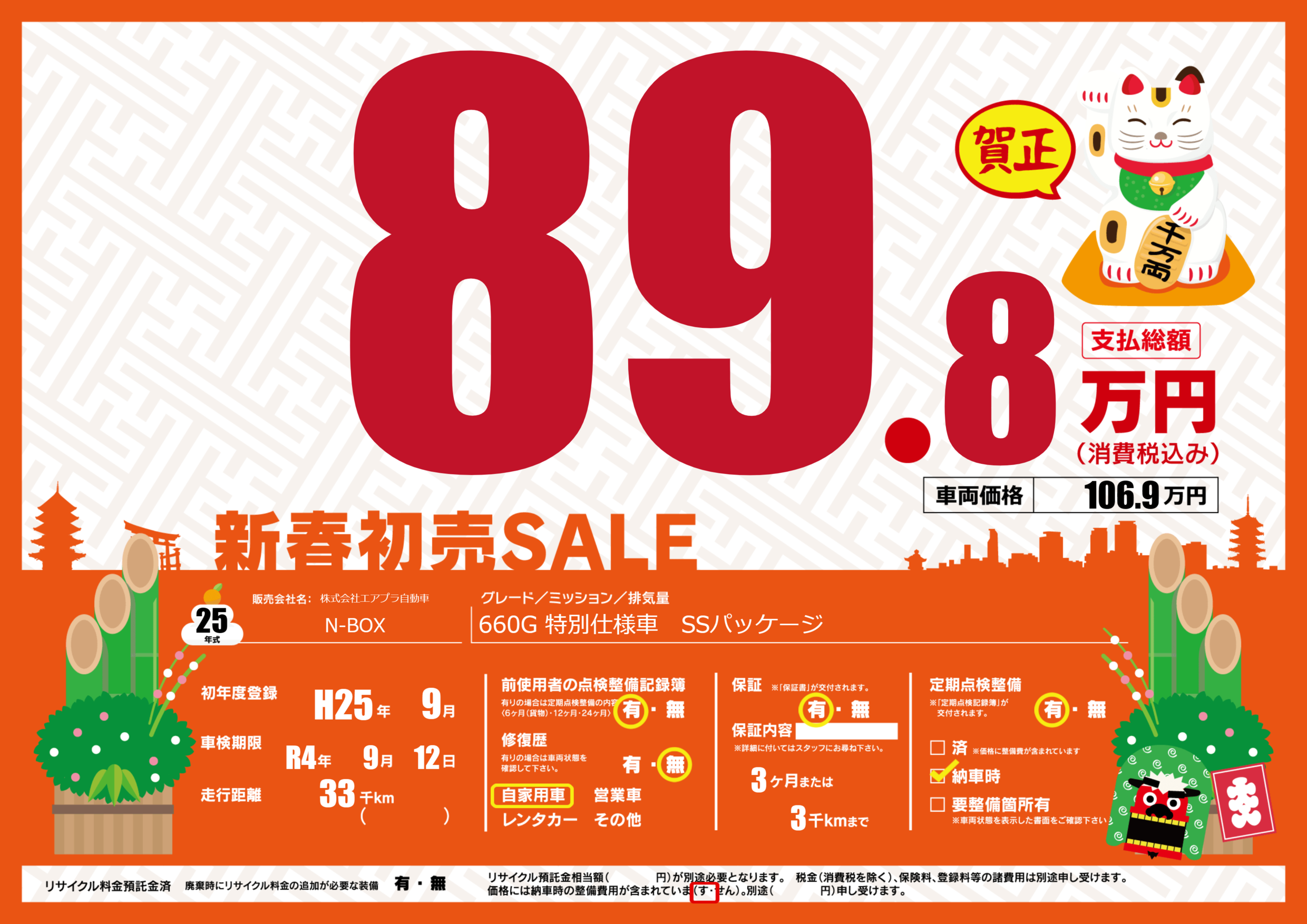 | 定期点検整備 | 定期点検整備あり 納車時あり | ||