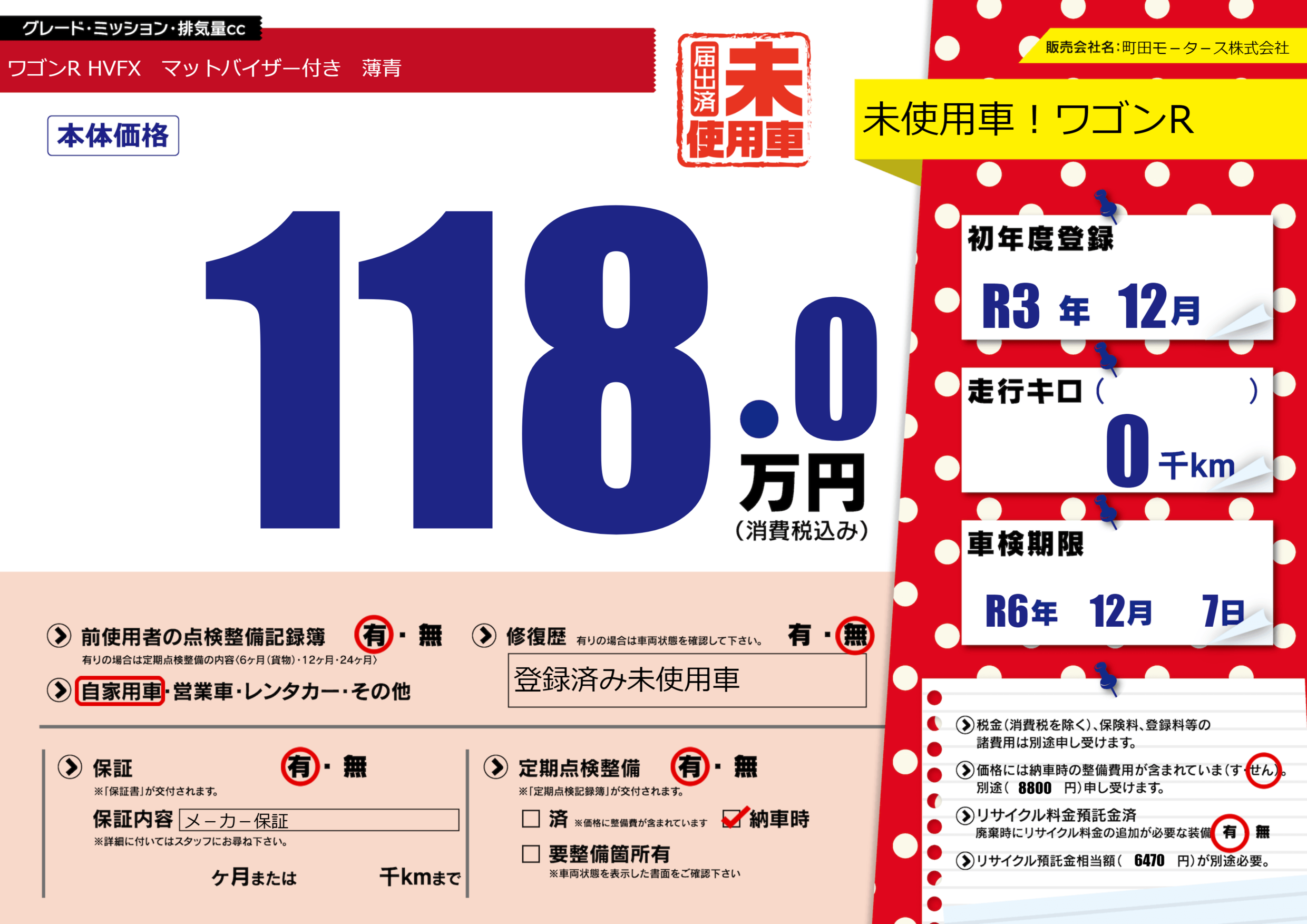 | 車検制限 | R6年 12月 7日 | ||