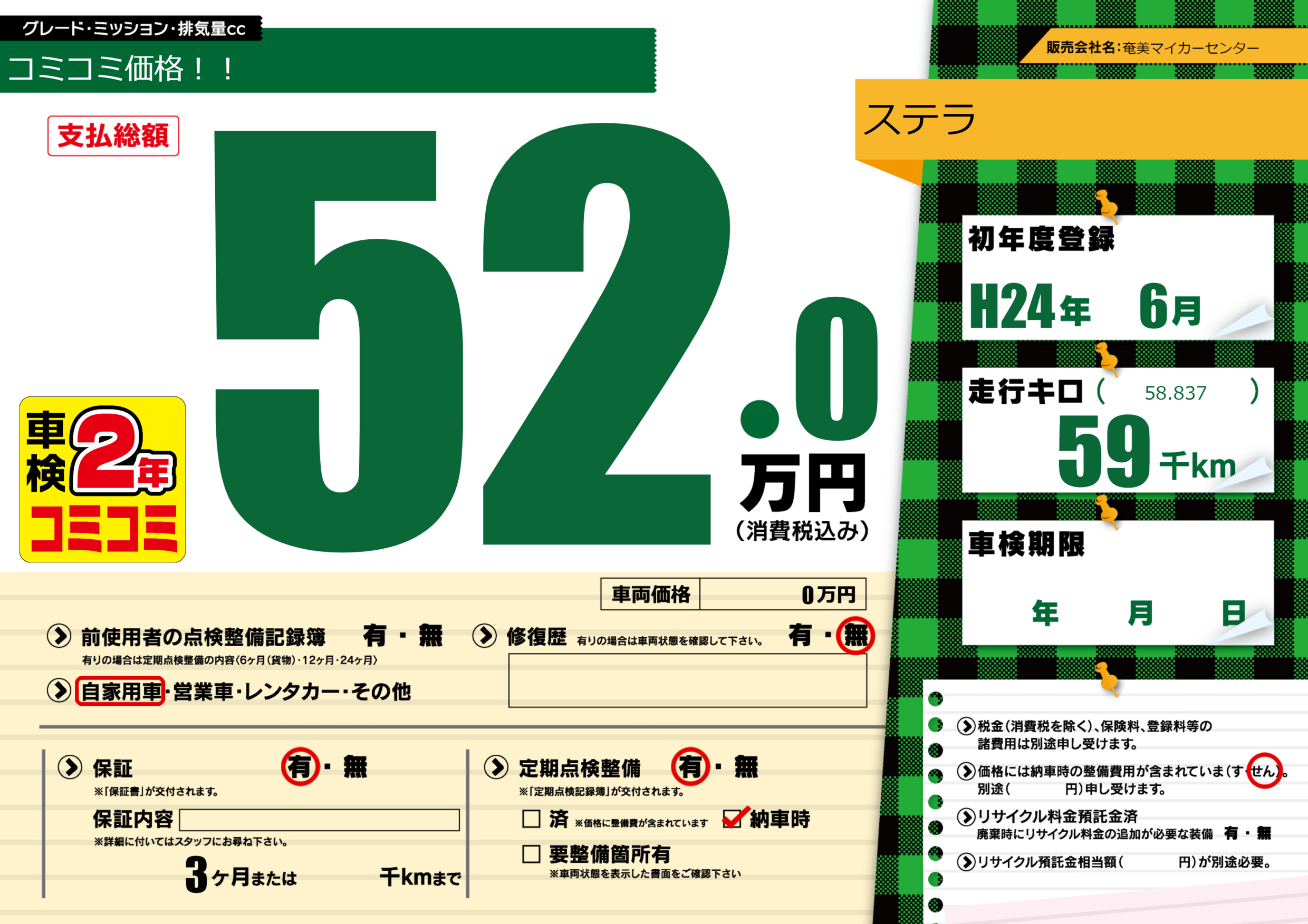 | 車名 | ステラ | グレード ミッション 排気量 |