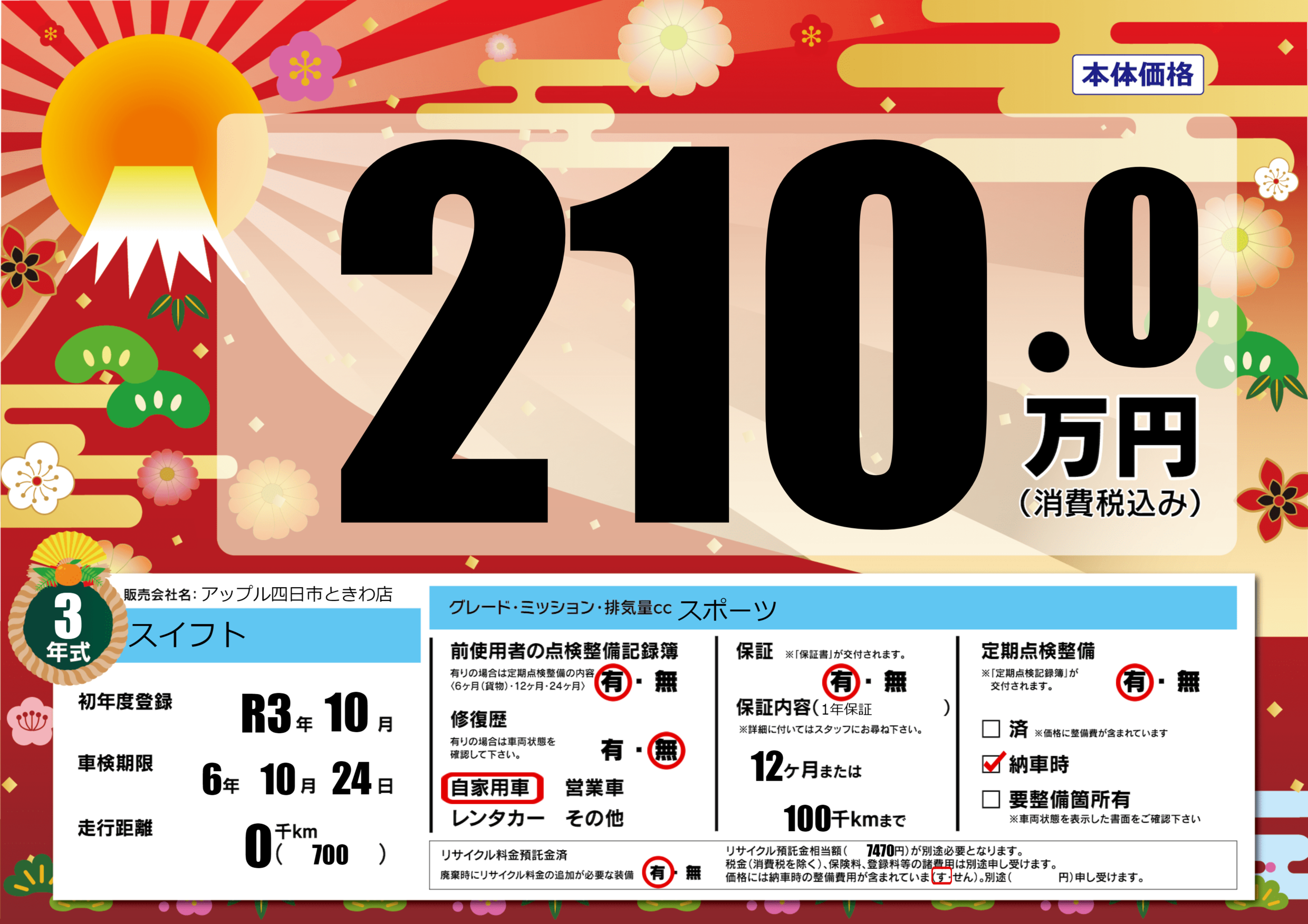 | 走行キロ | - | 初年度登録 | R3年10月 |
