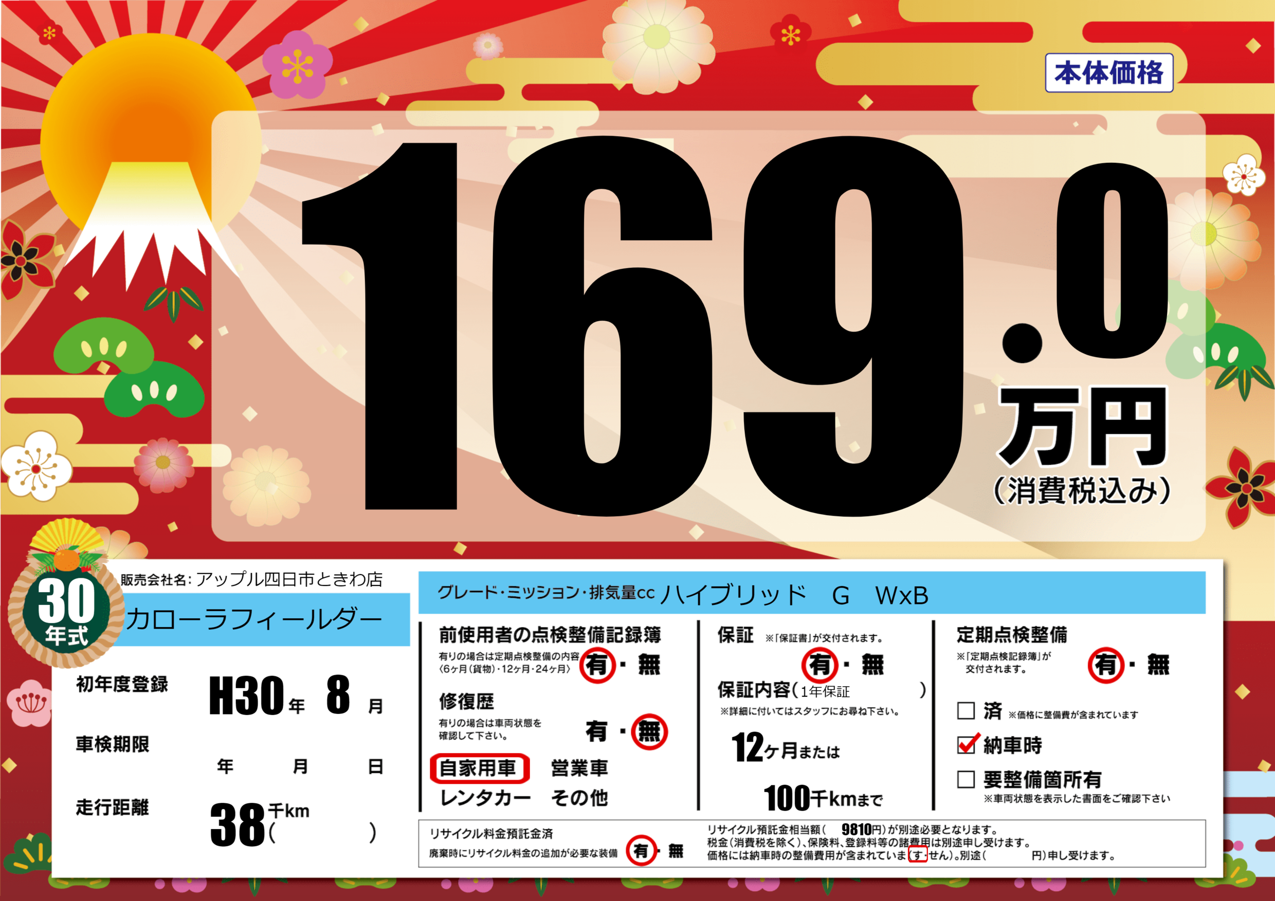 | 初年度登録 | H30年8月 | ||