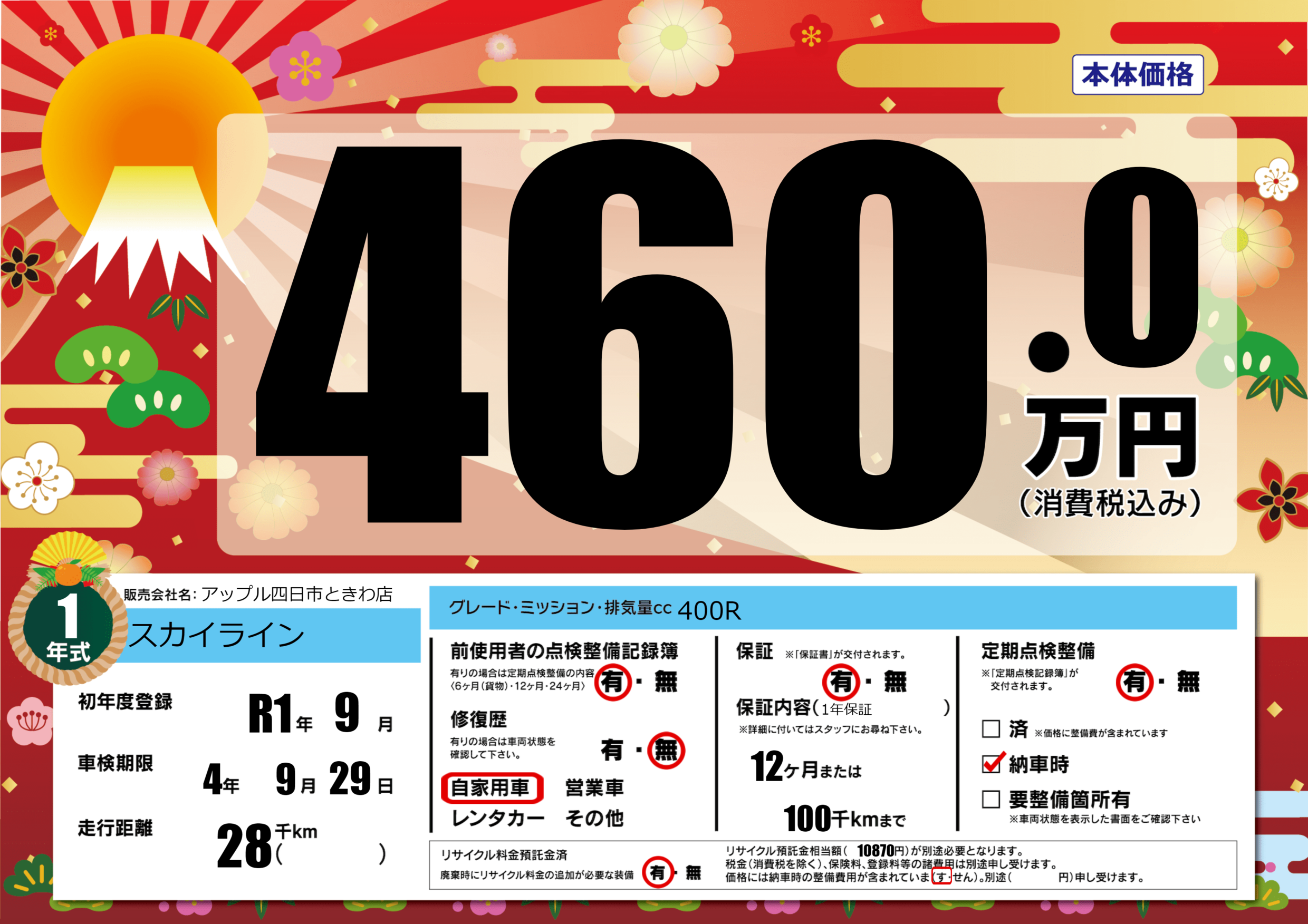 | 車名 | スカイライン | グレード ミッション 排気量 |