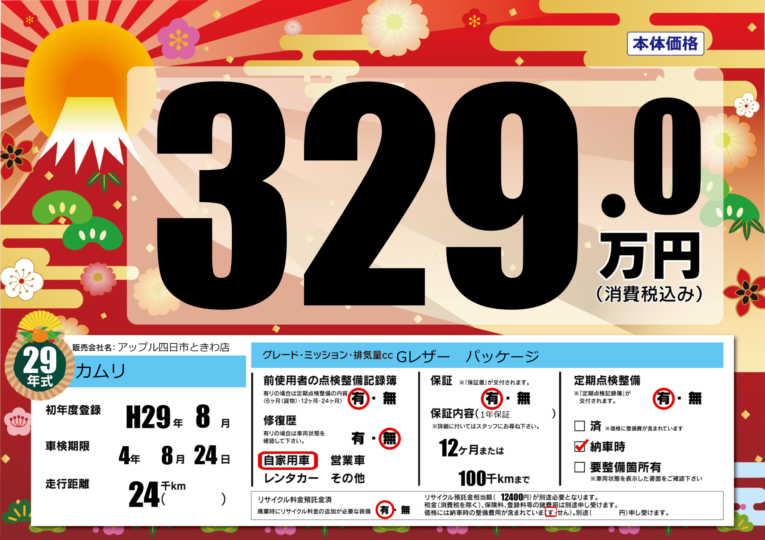 | 走行キロ | 2.4万km | 初年度登録 | H29年8月 |