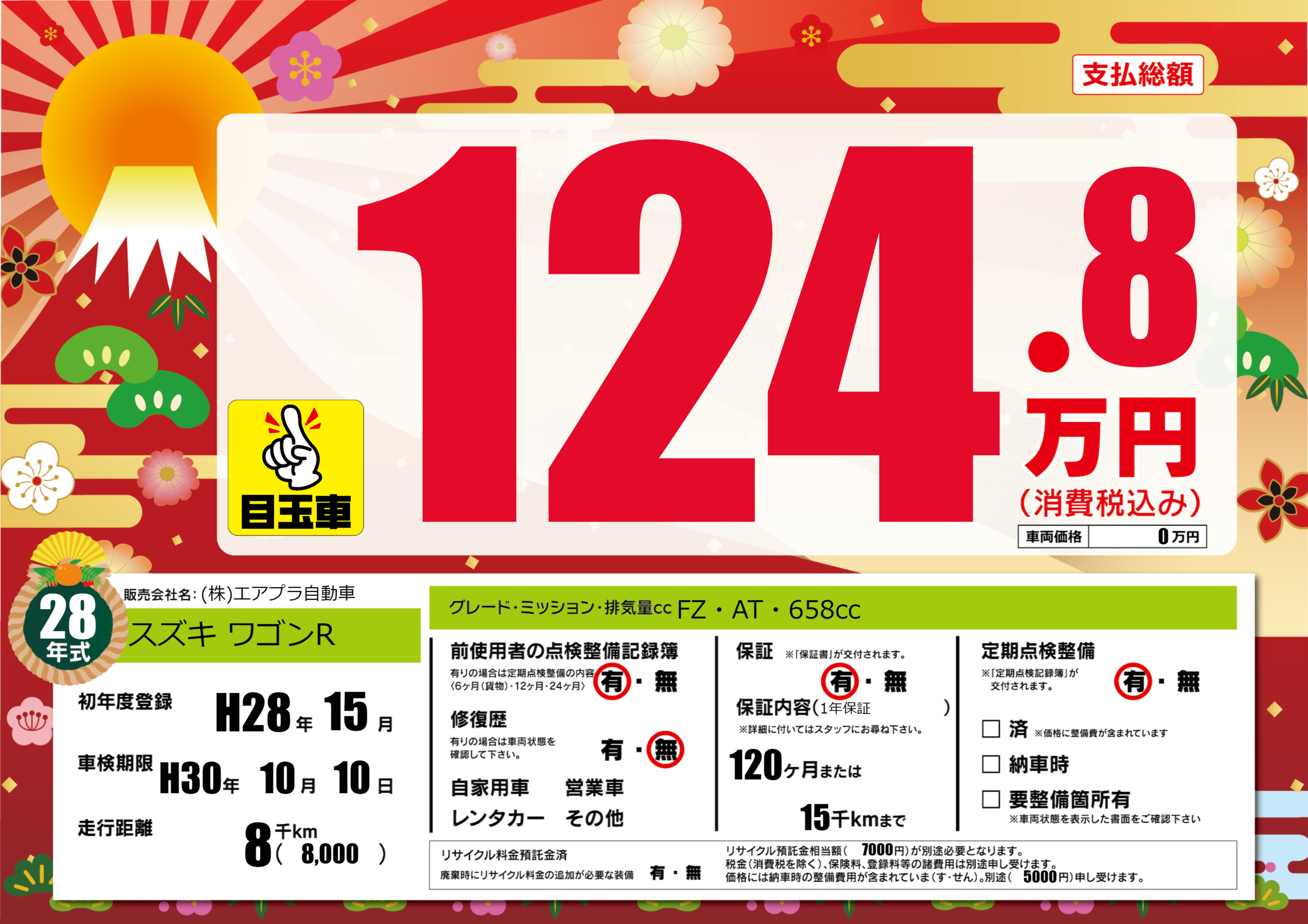 | 車名 | スズキ ワゴンR | グレード ミッション 排気量 |