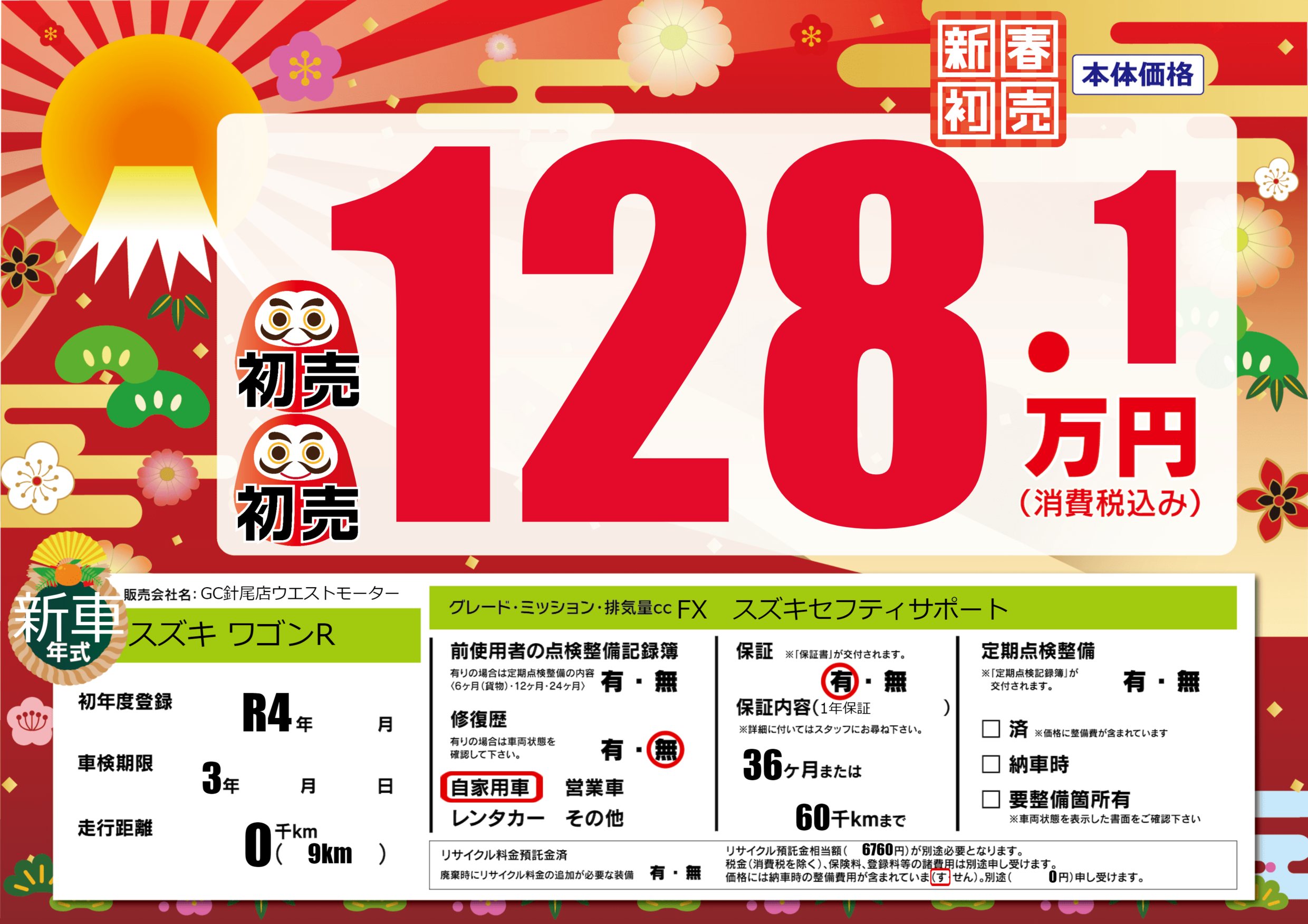 | 走行キロ | - | 初年度登録 | R4年---月 |