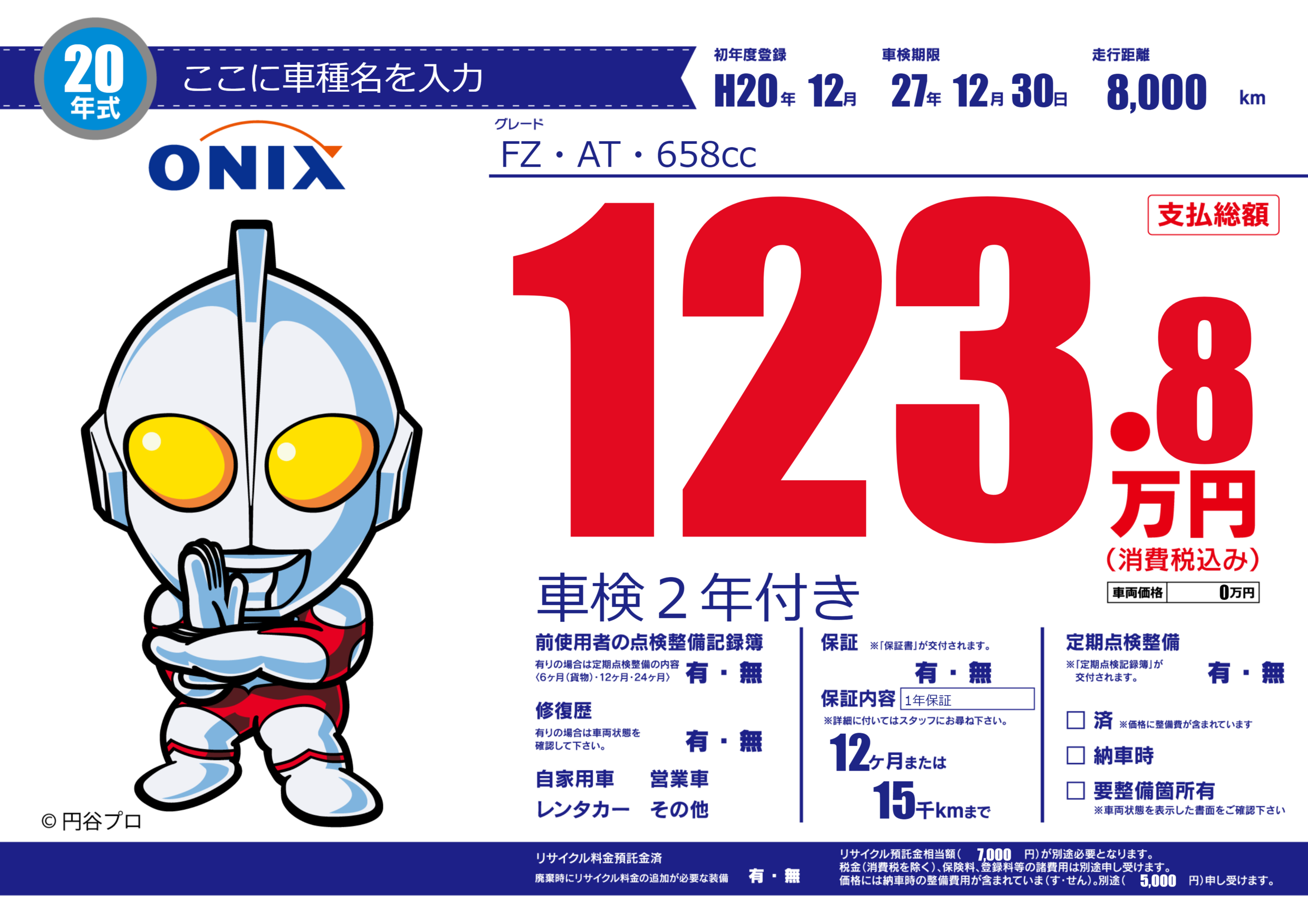 保証なし 保証内容(1年保証) 12ヶ月または(15)千kmまで |
