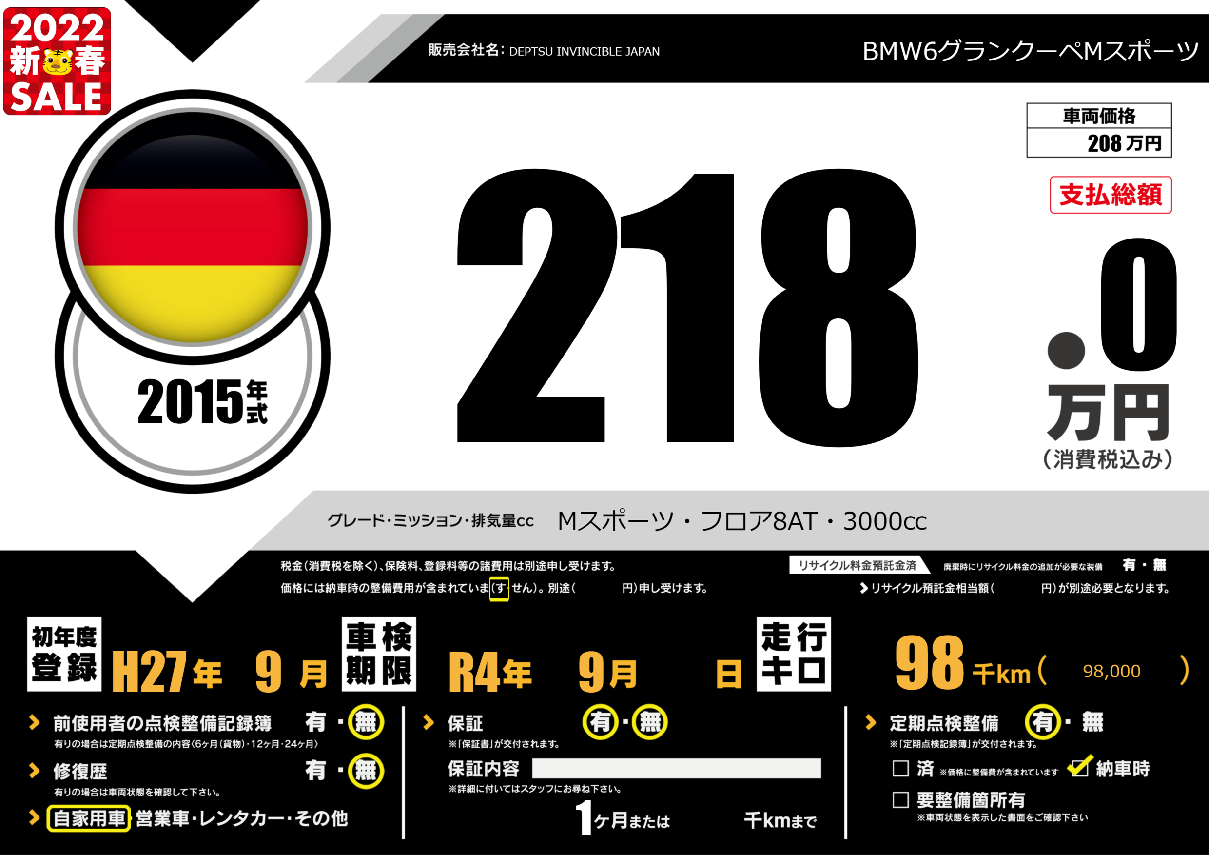 | 車検制限 | R4年 9月 - 日 | ||