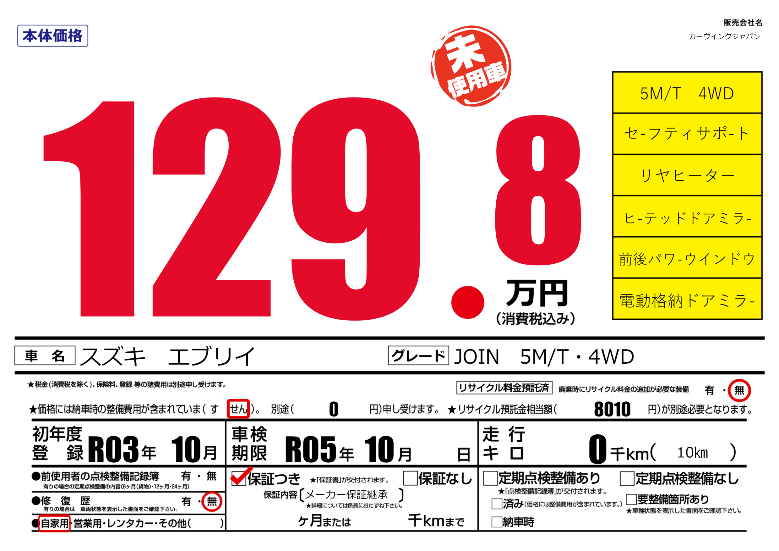 新車市場 一関中里店 Car WING Japanの展示車をすべて見る