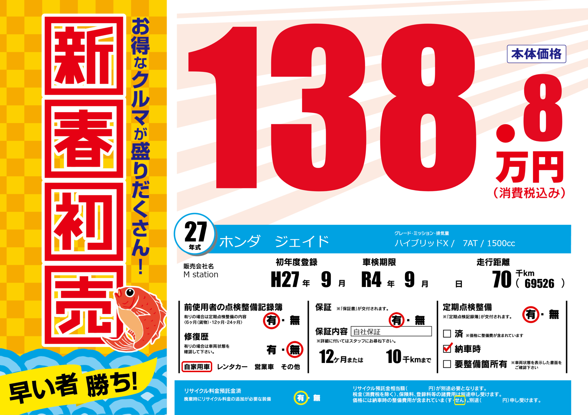 保証付き 保証内容(自社保証) 12ヶ月または(10)千kmまで |