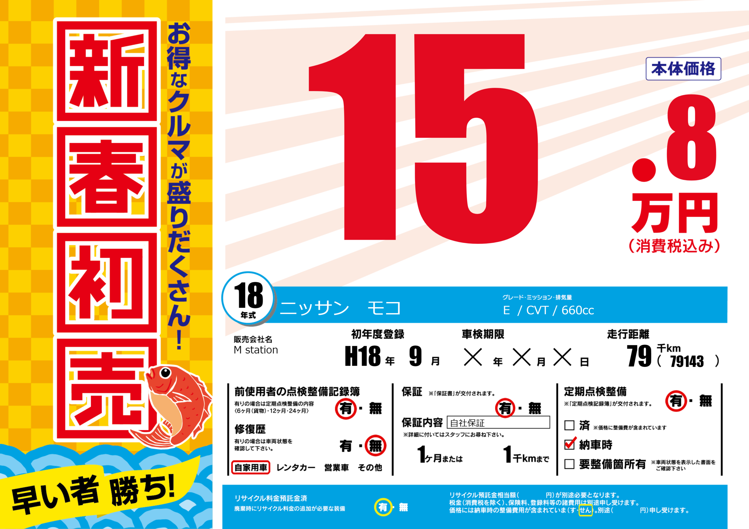 | 車名 | ニッサン モコ | グレード ミッション 排気量 |