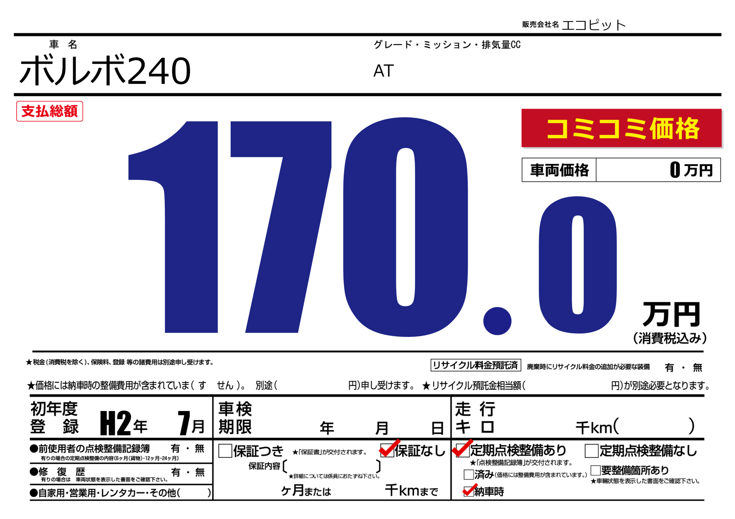| 車名 | ボルボ240 | グレード ミッション 排気量 |